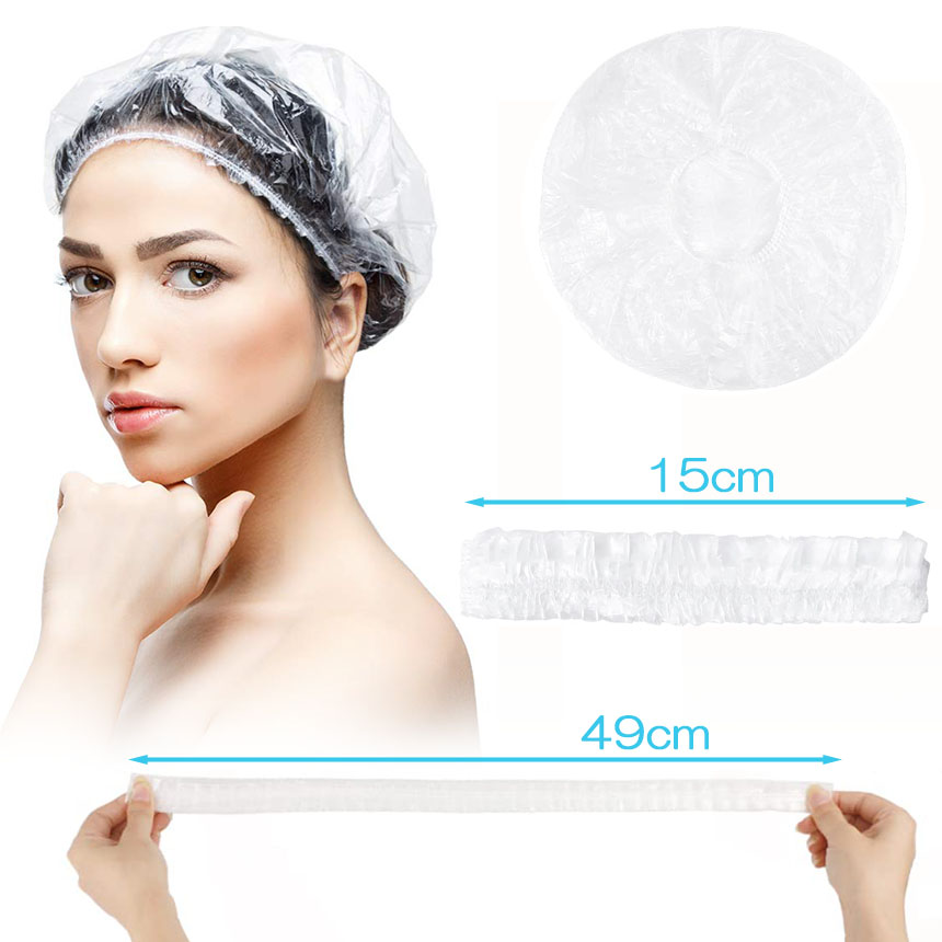 【いろいろ用途】:シャワー、洗顔、入浴時に髪を水しぶき、湿気から守ります。ヘアトリートメントキャップとして、ヘアーカラー、髪染めにも最適。食品工場・髪の飛散防止にもオススメ!