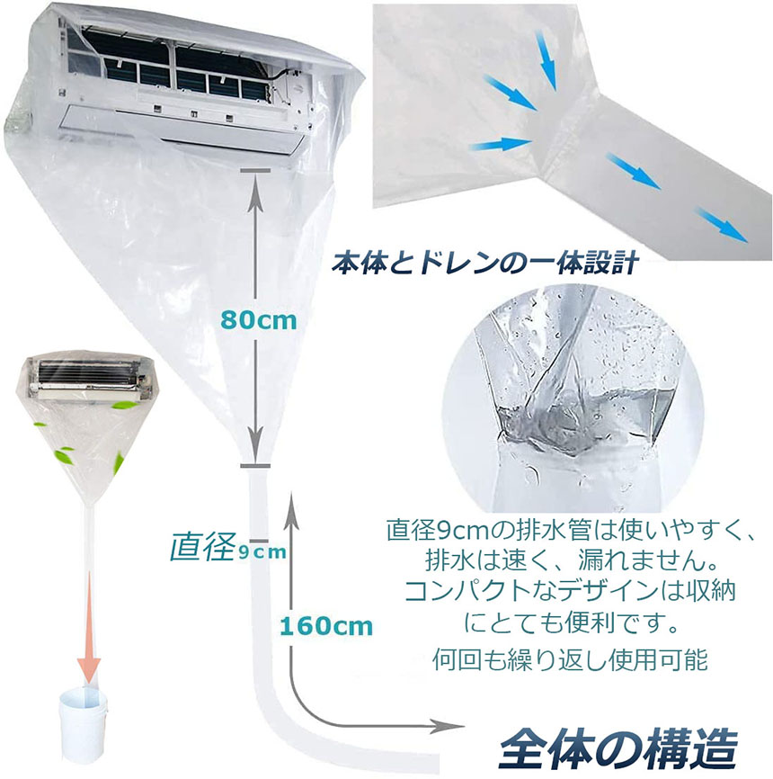 エアコン洗浄カバー 壁掛け用 エアコン掃除カバー クリーニング 洗浄 掃除 シート 壁掛用 透明 汚水の飛び散り防止 繰り返し 外周250cm 幅90cmまで対応 家庭用 業務用<br>