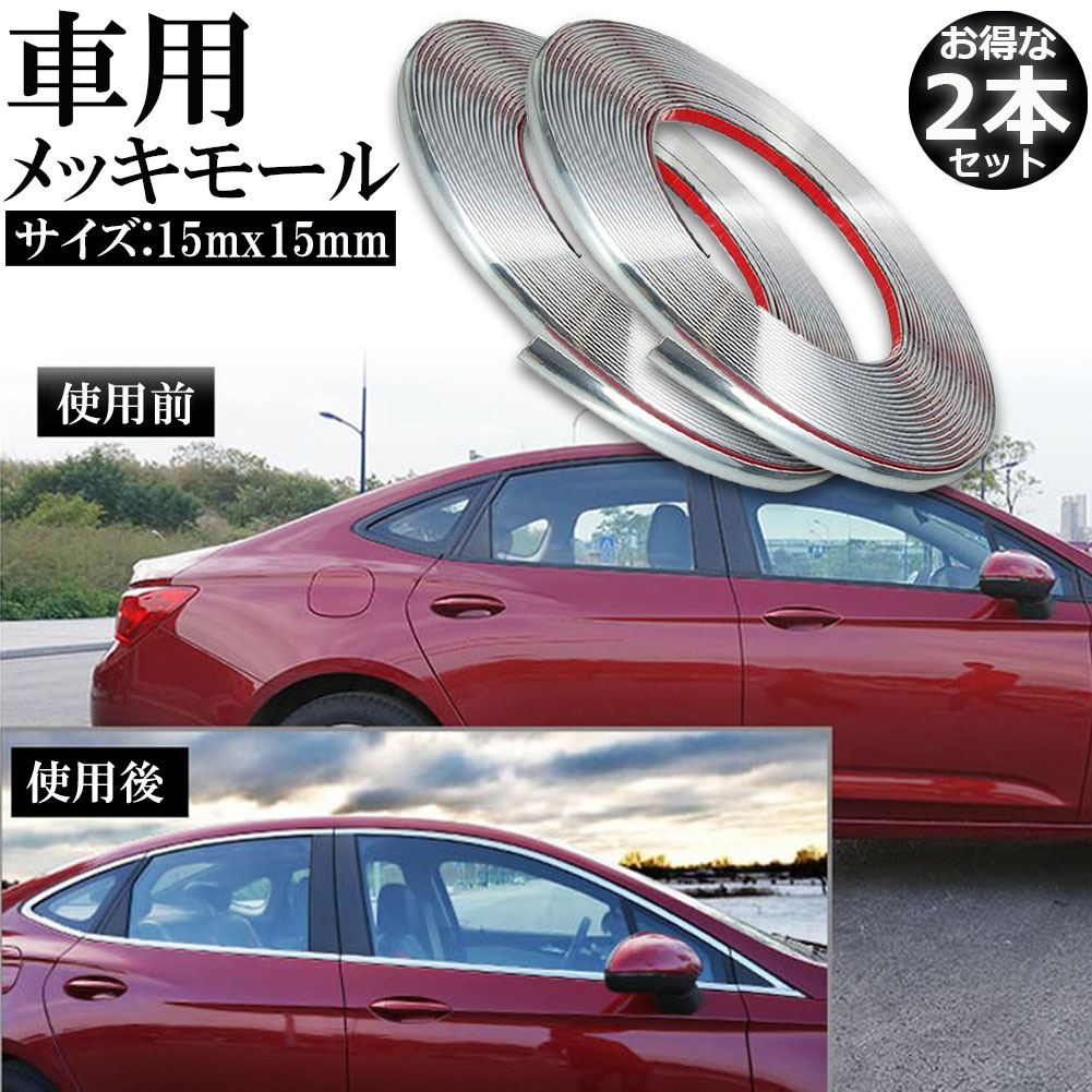 マルチモール バンパー 保護 車用 モール マルチモール ボディー プロテクター フェンダーモール クロムメッキ インテリア ドアモール 両面テープ 幅15mm 長さ15m 汎用 シルバー<br>