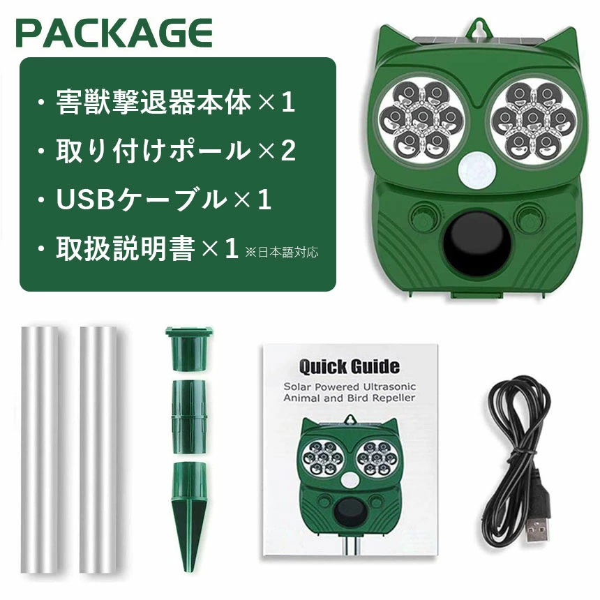 強いストロボ光や警報音を発することにより動物を撃退します。