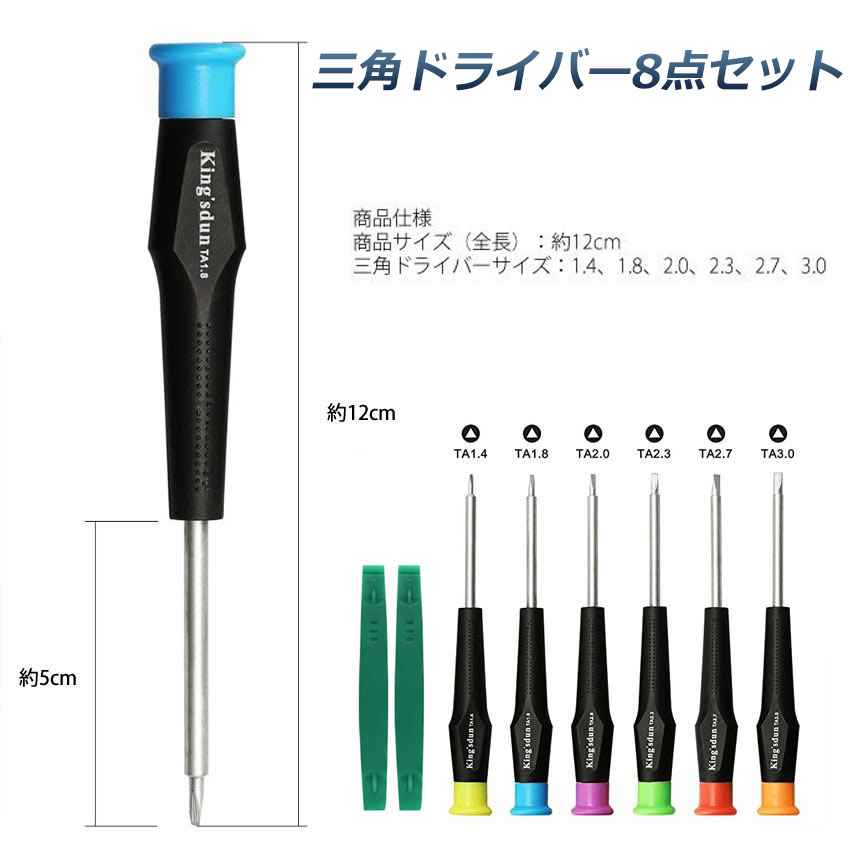 【サイズ】商品サイズ(全長):約12.2cm 樹脂製緑ヘラ(全長):8.3cm 三角ドライバー6サイズ:TA1.4、TA1.8、TA2.0、TA2.3、TA2.7、TA3.0