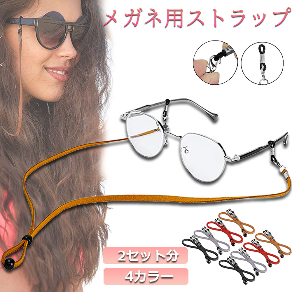【商品仕様】メガネストラップ×4本、合皮スエード、ゴム、プラスチック、鉄(表面メッキ加工)