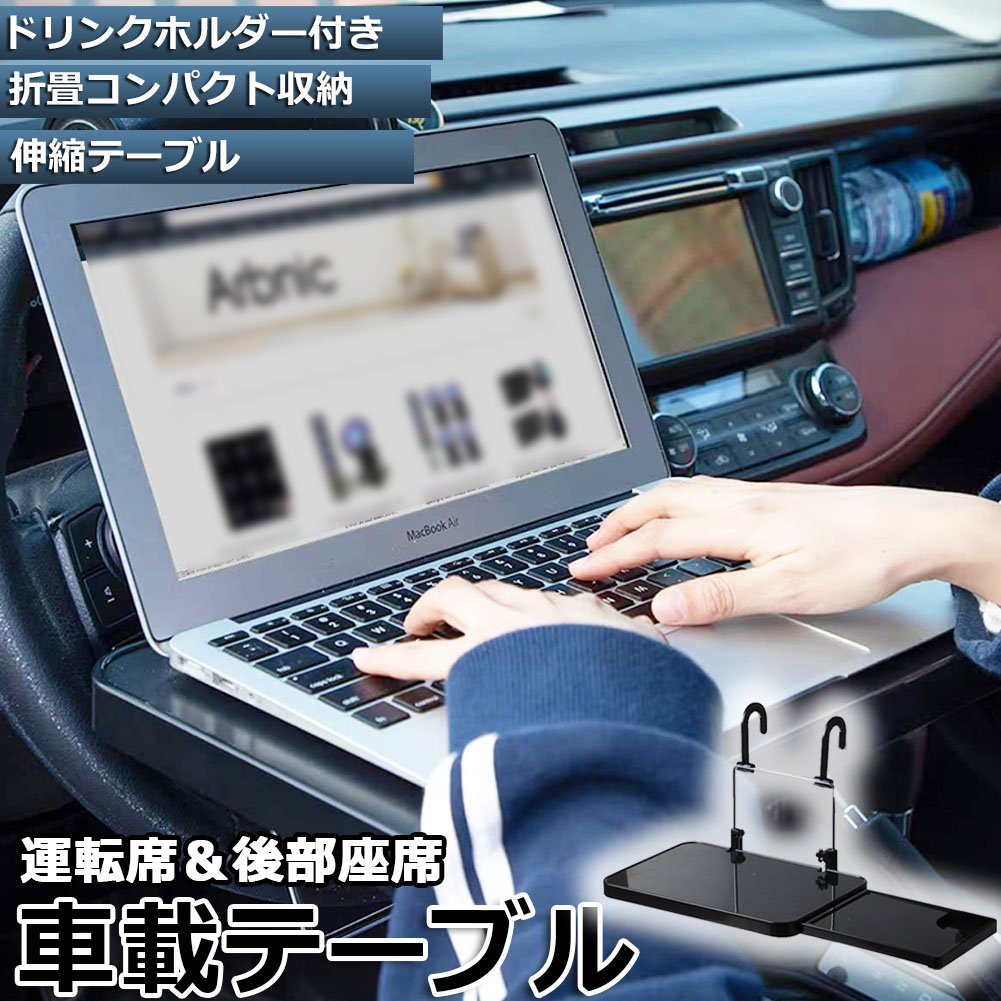 【簡単取り付け】 車のハンドルやヘッドレストに引っ掛けるだけで簡単に装着できる、ハンドルテーブルです。 ドリンクホルダーの付いた便利なスライド式サイドテーブルも付いています。