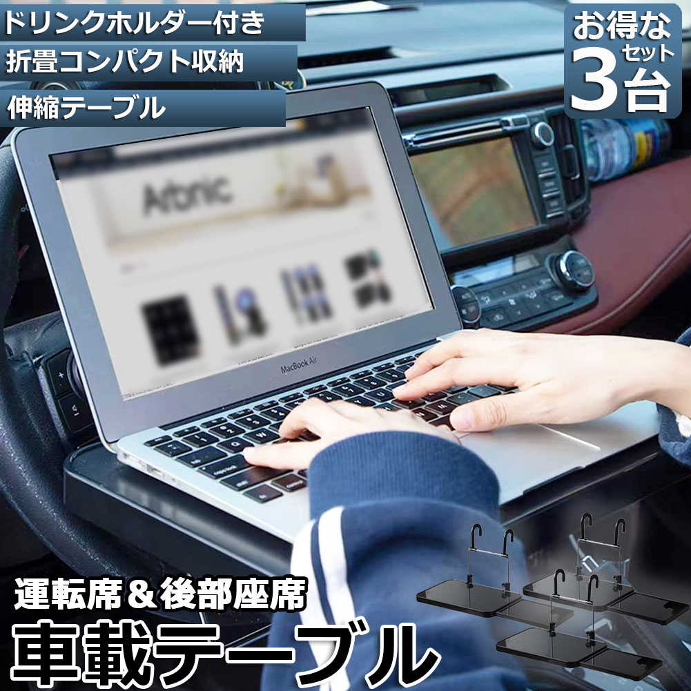 車 テーブル ハンドル 車載用テーブル 折りたたみ式 カーテーブル 車用テーブル 車内食事用テーブル 車用トレイ 折りたたみ サイドテーブル付き 角度調整可能 高さ調節可能 安定感 簡単取り付け 後部座席 【3個セット】