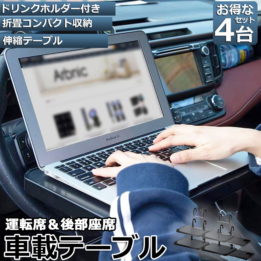 【簡単取り付け】 車のハンドルやヘッドレストに引っ掛けるだけで簡単に装着できる、ハンドルテーブルです。 ドリンクホルダーの付いた便利なスライド式サイドテーブルも付いています。