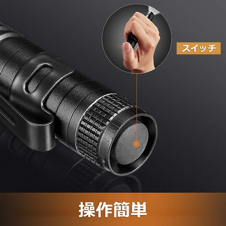 【多用途】ライト本体はアンチスリップデザインで滑りにくく、表面は軍用グレード硬質酸化耐摩処理をし、長い年月を経ても磨損や錆に負けず、きれいに長持ちさせます。キャンプ・夜釣り・山登り・夜道の一人歩き・防犯・護身用・緊急災害時に心強い味方です。