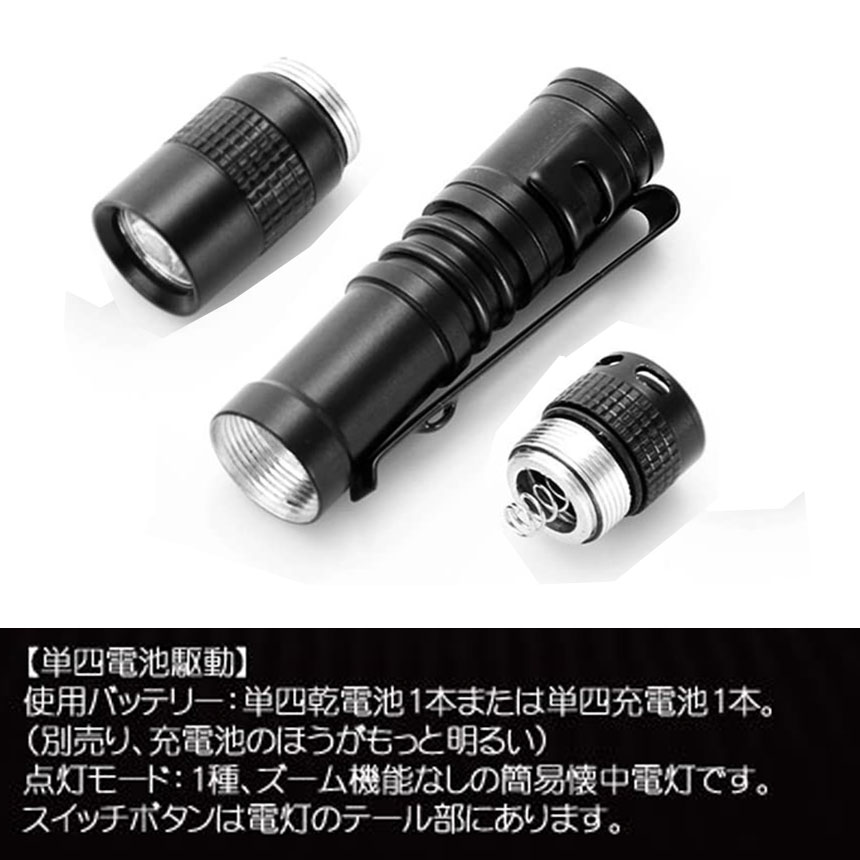 点灯モード:1種、ズーム機能なしの簡易懐中電灯です。