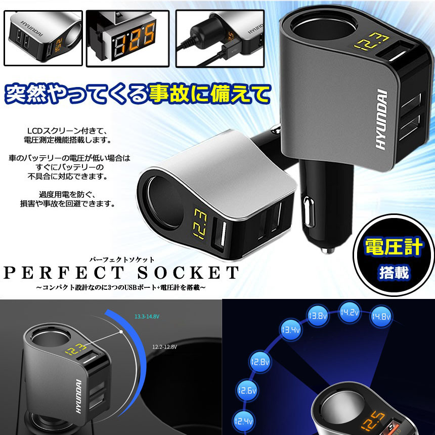 LEDデジタルディスプレーが搭載され、12V~24V自動車のバッテリーの電圧数をディスプレーに表現されます。