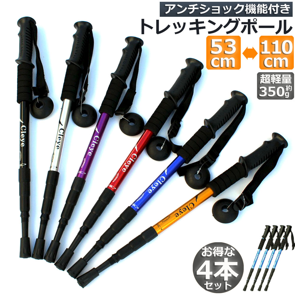 トレッキングポール 軽量 登山用ストック ウォーキングポール 登山 アルミ製 I型 伸縮 長さ調整 コンパクト 登山杖 滑り止め 登山 ハイキング ウォーキング トレッキング【4本セット:レッド 4本セット】