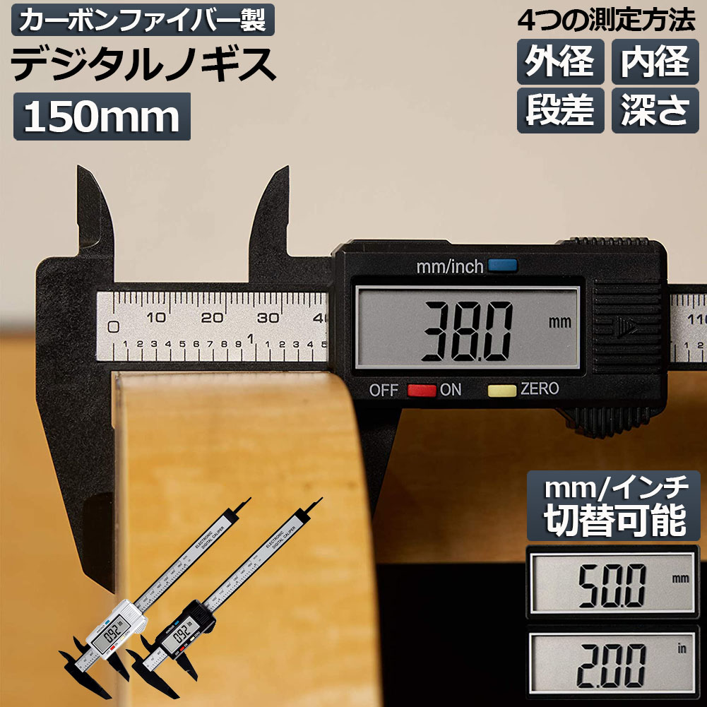 デジタルノギス 150mm カーボンファイバー 大画面 LCDディスプレー 外径 内径 深さ 段差 測定 高品質 電池付き 測定工具 精密作業 大工DIY 測定工具