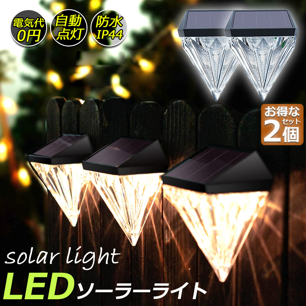 デッキライト ガーデンライト ソーラーライト 屋外 防水 暖色 おしゃれ ダイヤモンド型 ソーラー フェンス ポスト LED 壁照明 ステップ パティオ 庭 装飾ライト 壁掛け 自動点灯 消灯