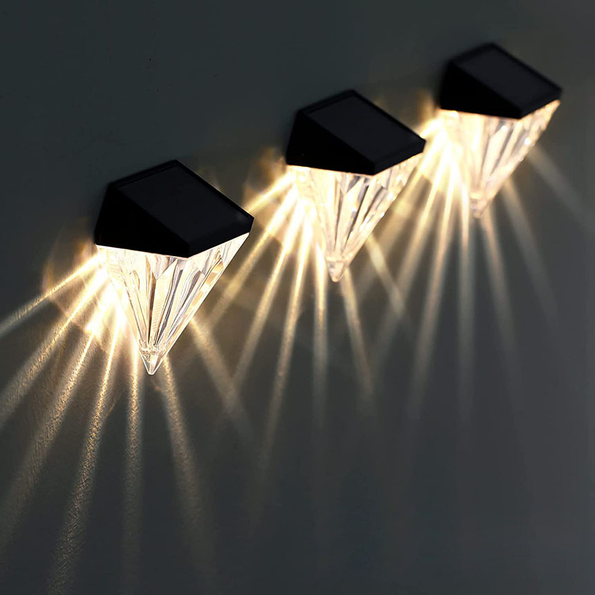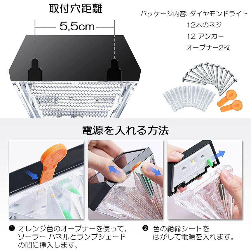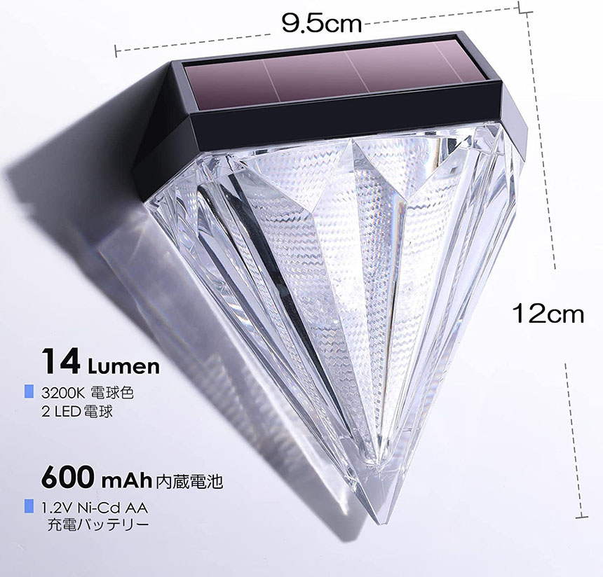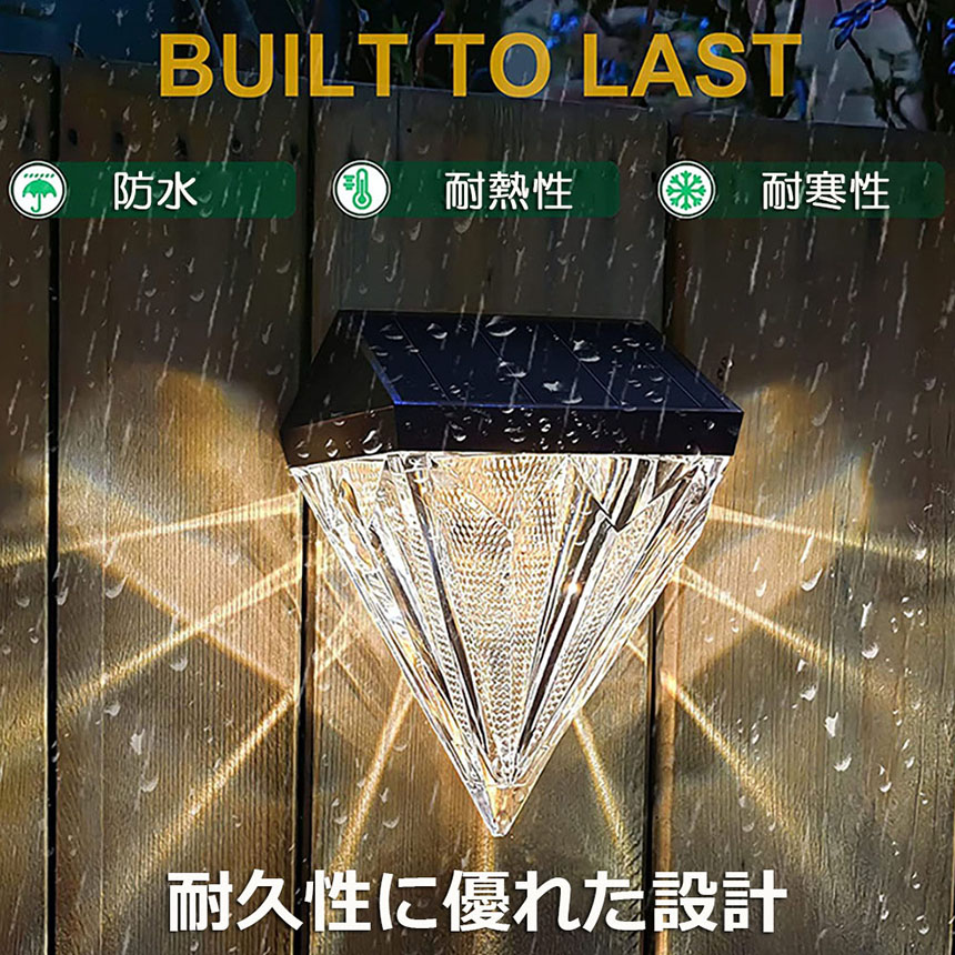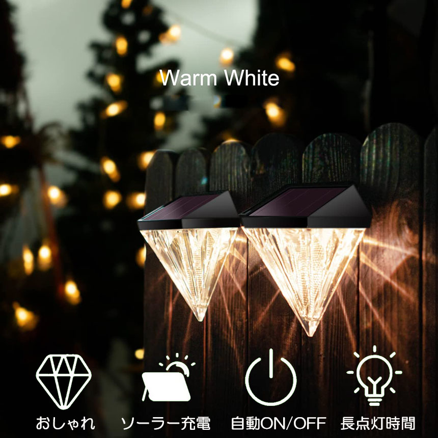 デッキライト ガーデンライト ソーラーライト 屋外 防水 暖色 おしゃれ ダイヤモンド型 ソーラー フェンス ポスト LED 壁照明 ステップ パティオ 庭 装飾ライト 壁掛け 自動点灯 消灯