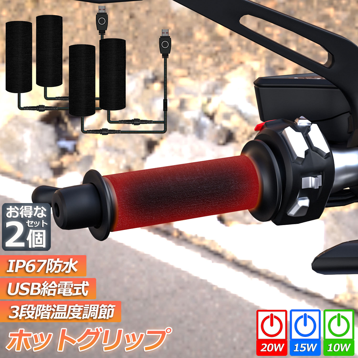 グリップヒーター バイク用 巻き付け usb給電 モバイルバッテリー給電可能 オートバイ用 グリップウォーマー 3段階温度調整 電熱ハンドル グリップヒーター ホットカバー ハンドル 冬 ツーリング ハンド【2個セット】