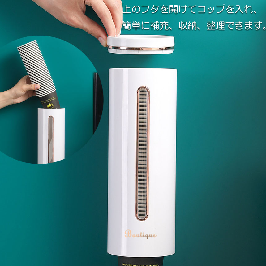 カップディスペンサー 紙コップ 壁掛けタイプ 使い捨てコップ