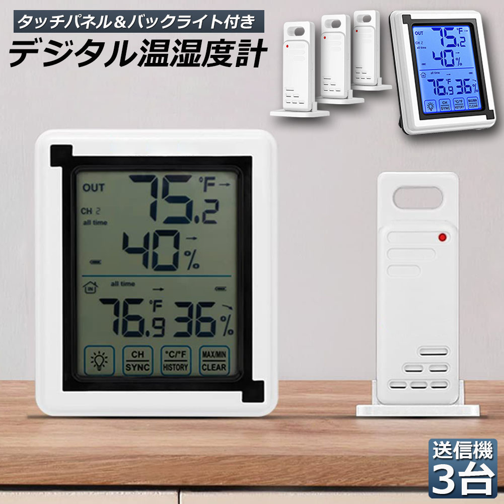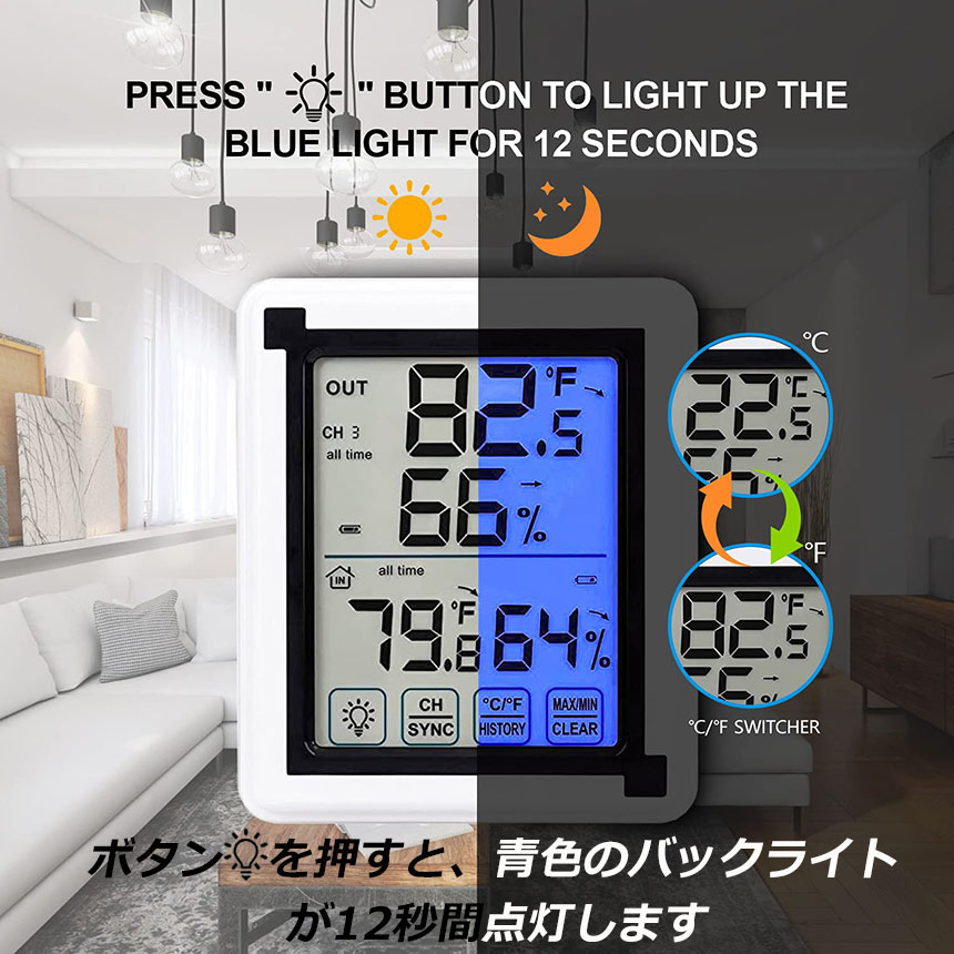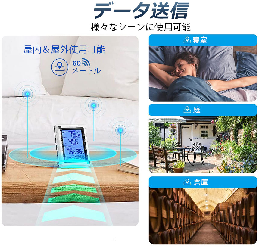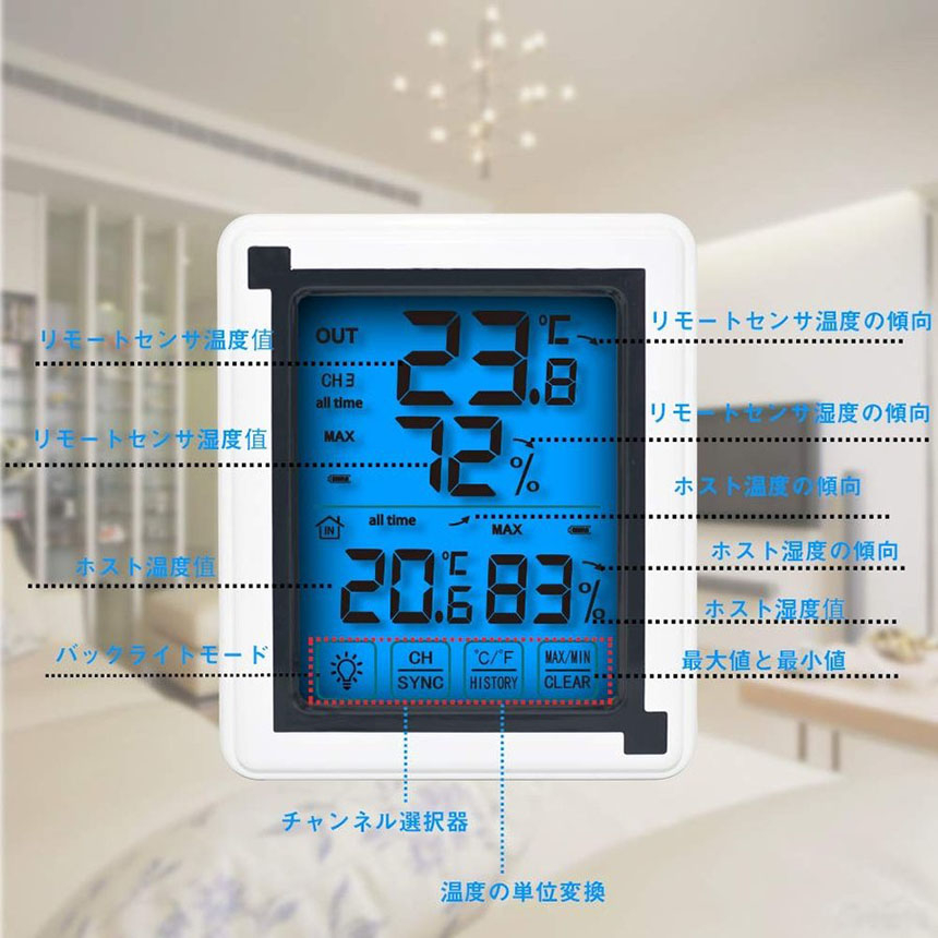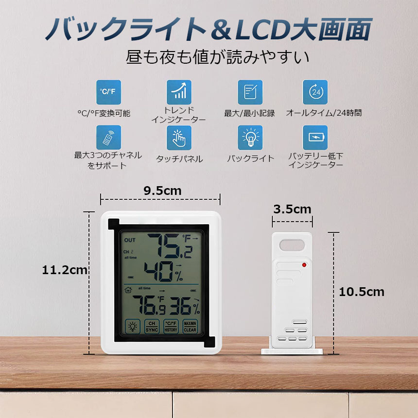 温度計 温湿度計 デジタル 温湿度計 外気温度計 ワイヤレス 外気温度計 ワイヤレス 防水 温度湿度計 冷蔵庫 業務用 室内 室外 高精度 LCD大画面