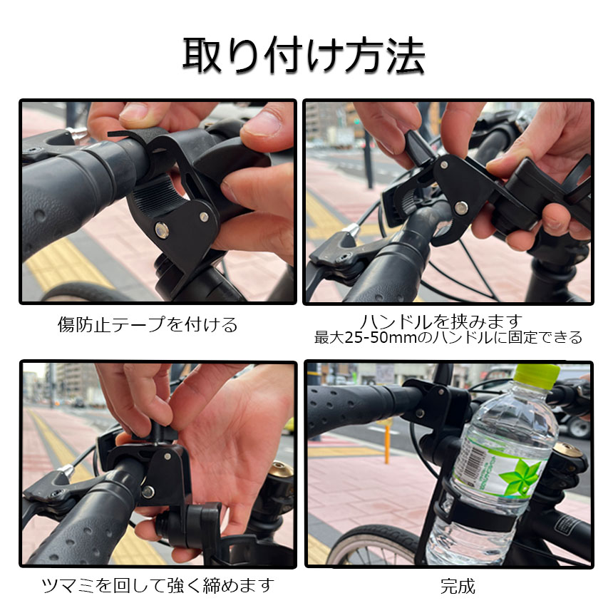 【取付簡単】取付はとても簡単で、面倒な工具などは一切使わず、取付は片手でネジを締めるだけ、取り付け径を調整できます、クリップ式ボトルホルダーで車を傷つけません。