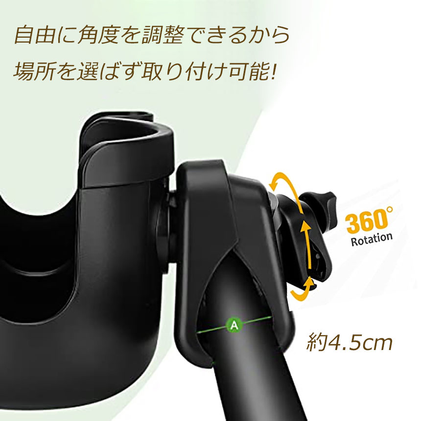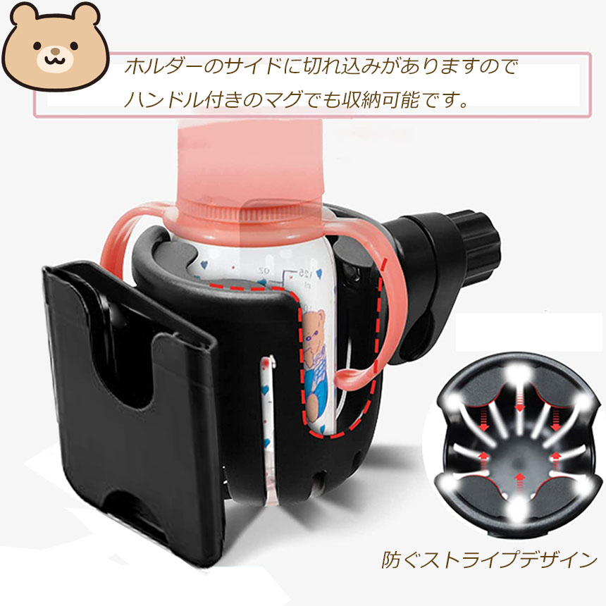 【多機能】:収納簡単、幅広い適用性、様々なベビーカー、トロリー、バシネット、子供用三輪車、自転車、マウンテンバイクなどに適用。哺乳瓶、缶ジュース・マグカップ・ペットボトル、コンビニコーヒー、スマホなどに対応、ベビーカー、自転車、チャイルドシート、ベビーチェア、電動バイク、デッキチェアでも簡単に取り付けます。