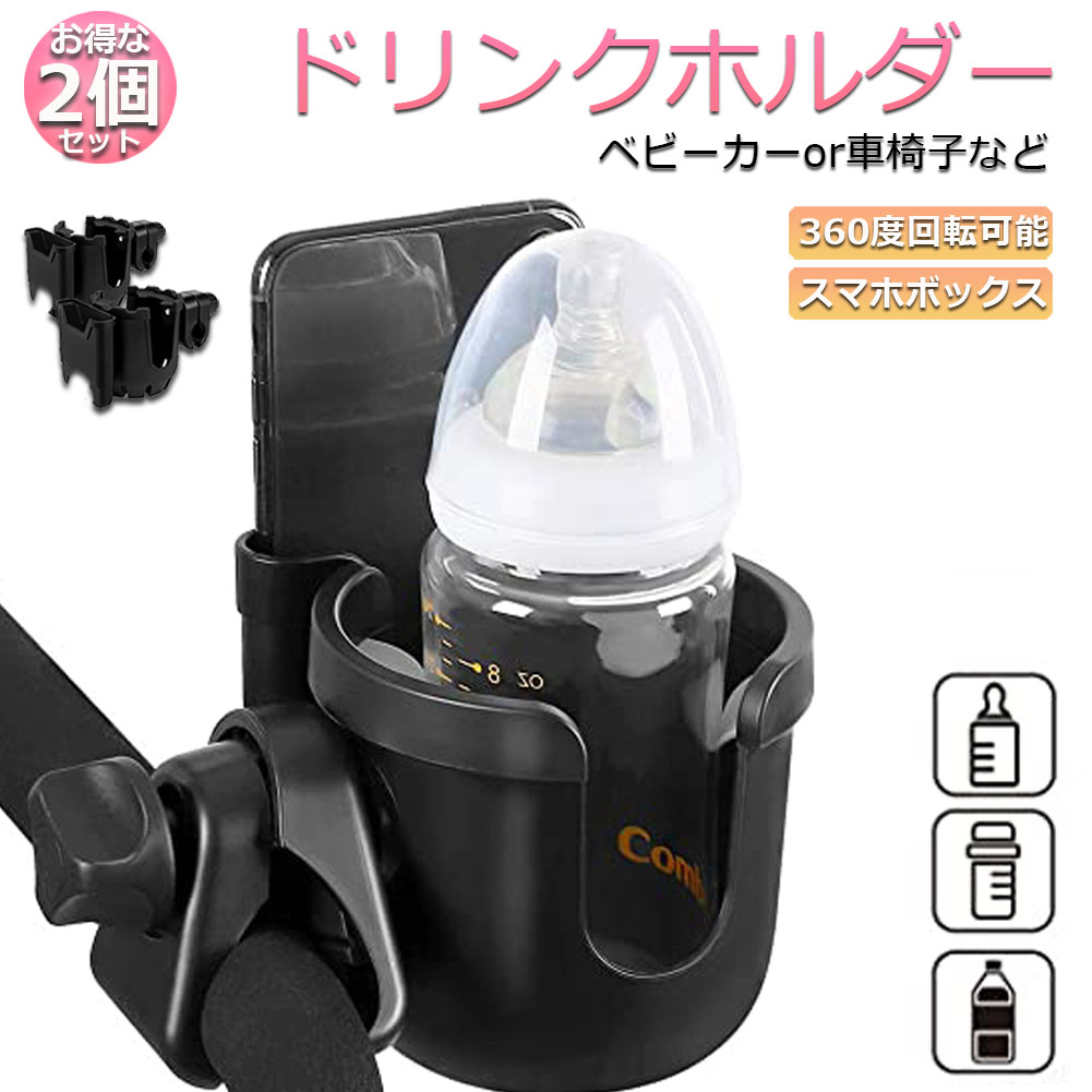 【取付簡単】:ベビーカーに簡単取り付け!ドリンクとスマートフォンが収納できるドリンクホルダーです。取り付け部分が360°自由に回転するので取り付け場所を選びません。ホルダー部分内側はシリコン製の滑り止め付き!しっかりホールドするのでどんなカップにも対応します。ドリンクホルダーは直径約8cmまで対応
