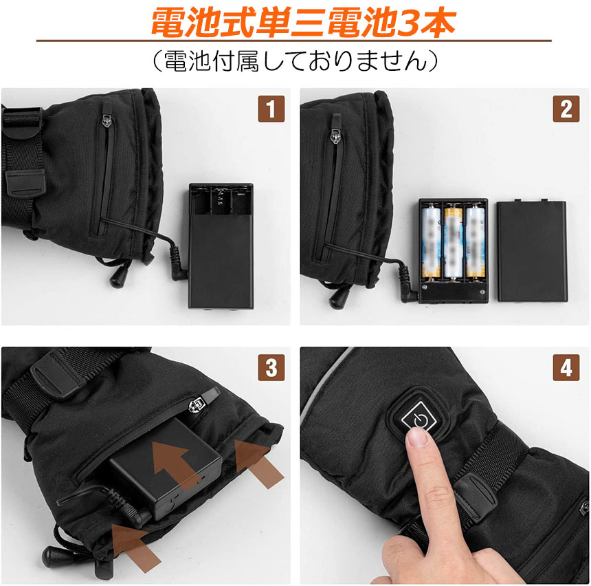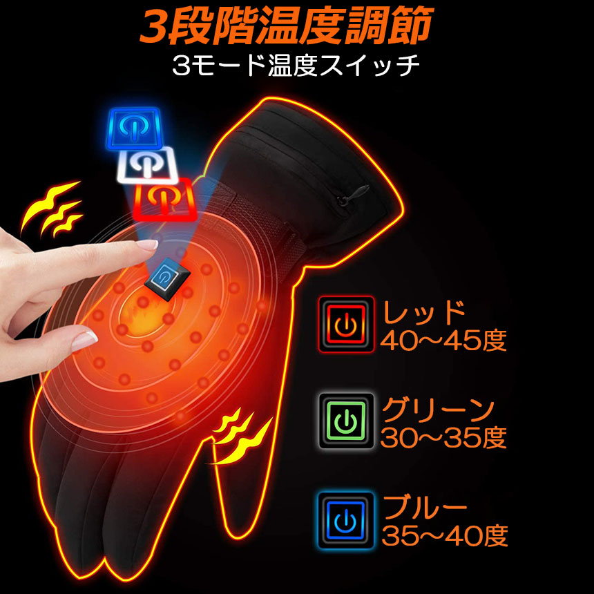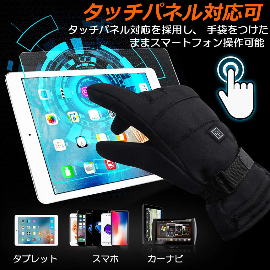 ヒーターグローブ 電熱グローブ バイク 発熱 防寒対策 ヒーターグローブ 電熱ヒートグローブ 暖房手袋 スマホ操作 3段階調温 電池式<br>