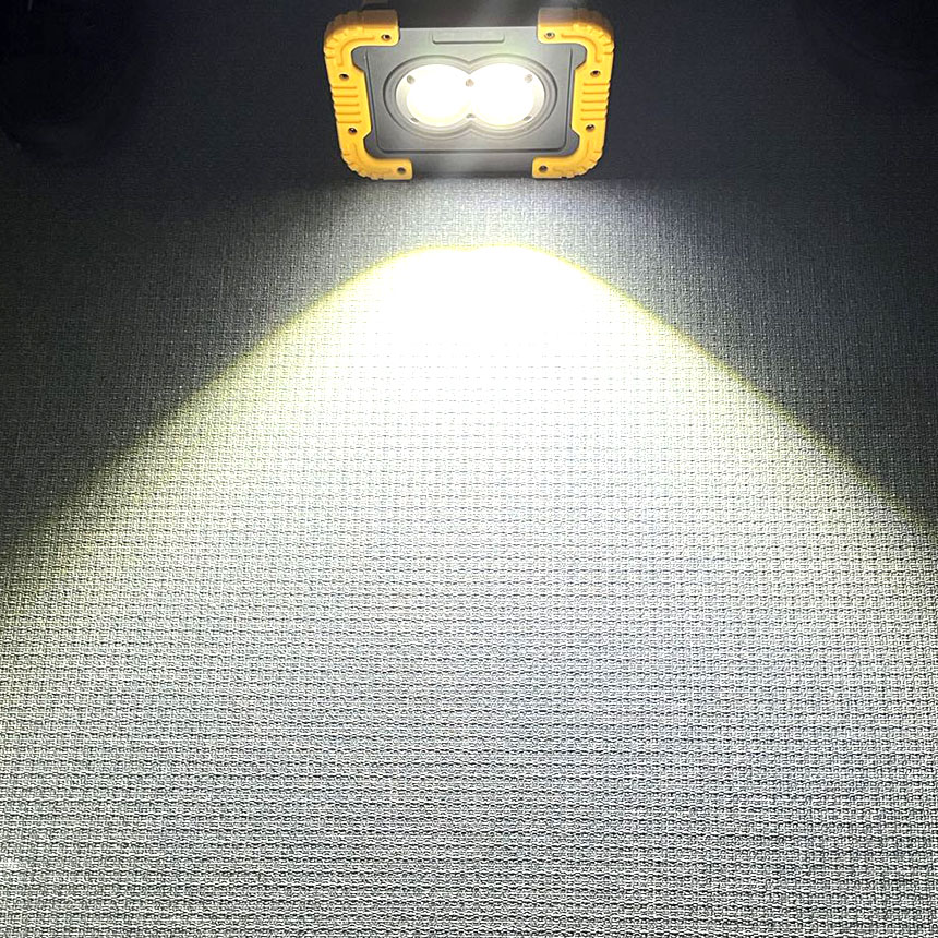 【ダブルライト・3つの点灯モード】10W COBチップを2個搭載している投光器です。暗いところで作業は楽になれます。三つ点灯のモードが自由切り替え可能です。電源ボタンを押すとダブルライト、強光シングルライト、弱光シングルライトモードを切替できます。場所に合わせてモード切替を通してさまざまな作業ニーズを満足することが可能です。