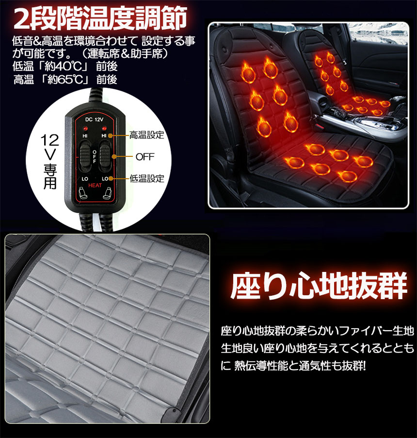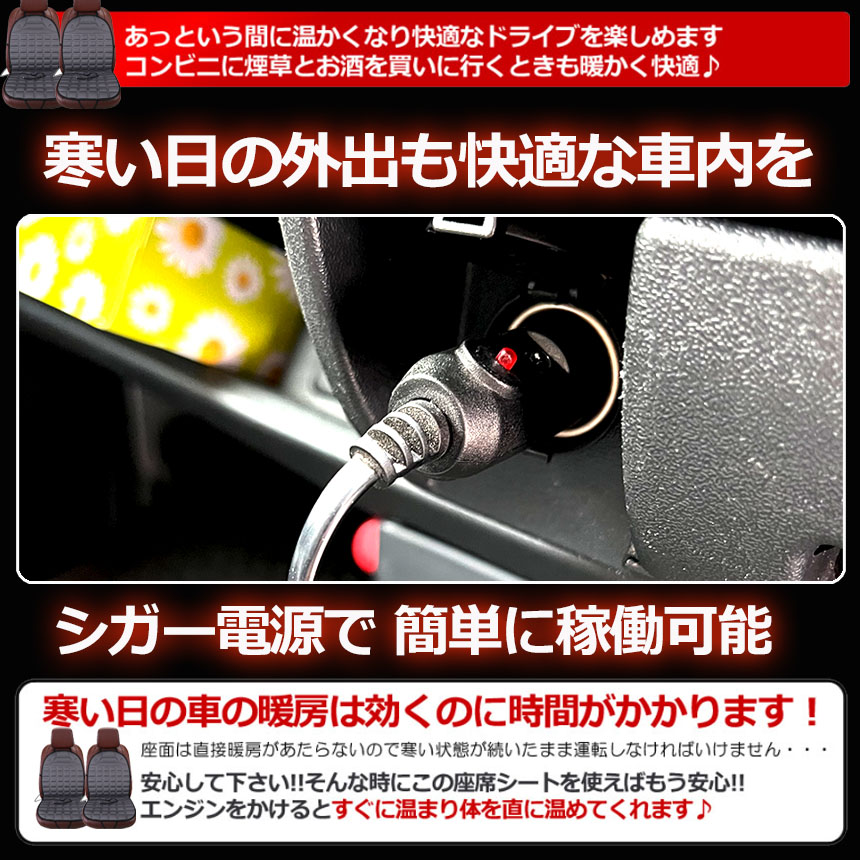 ホットカーシート 運転席&助手席2掛けタイプ カーシート ヒーター 12v車用 シートヒーター 車用 即暖 シートヒーター シートカバー シガー 電源 12V 座席ヒートクッション<br>