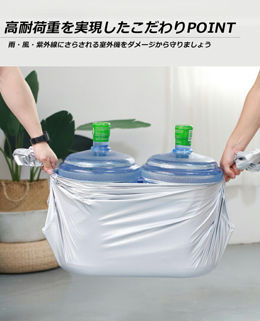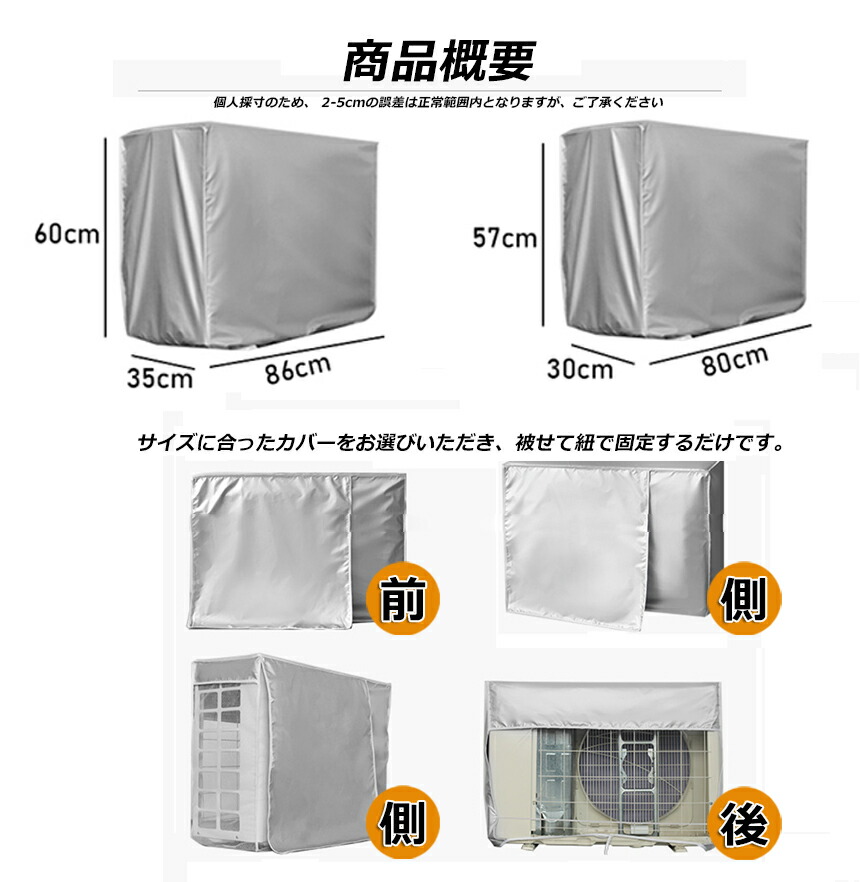 【室外機保護カバーについて】Sサイズ:80x30x57cm、Mサイズ:86x35x60cm、サイズの許容誤差は±3cmです。必ずお手持ちの室外機のサイズをご確認の上、商品をお選びください。重量:約96~153g。