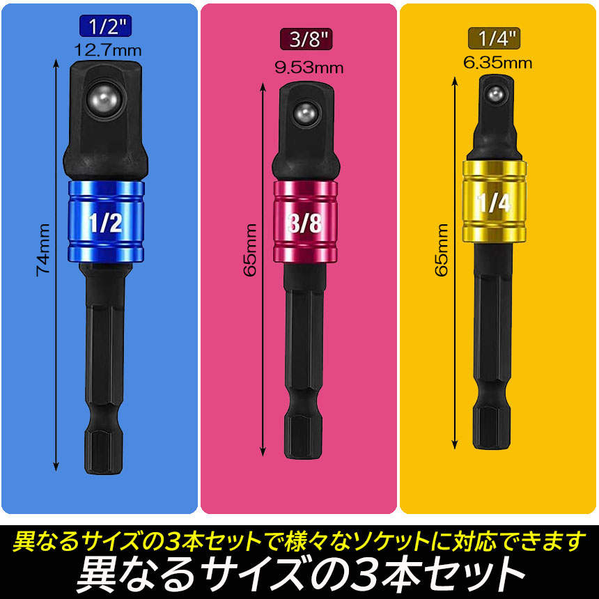 ドリルアダプター ソケットアダプター L型 六角シャンク 1/4 3/8 1/2 ドリルアダプター ソケットアダプター 105度 直角ドリルビット 延長ドリルビット<br>
