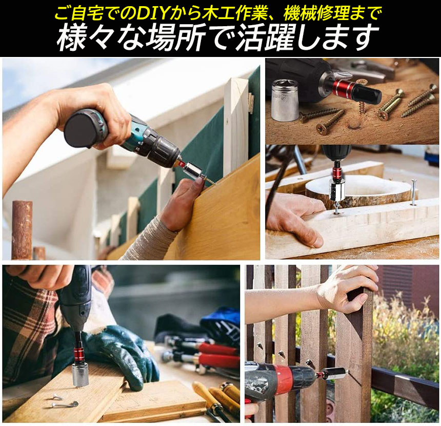 【4点セット】105° アングル延長1/4インチ 6mm 六角ドリルビットドライバーソケットホルダーアダプター、1/4インチ六角ドライブシャフトはクイックチェンジ対応で、ほとんどの電動ドリル、充電式ドリル、マニュアルレンチ、ドライバーチャックに適合します。磁気1/4インチ六角ソケットは標準的なドリルとドライバービットを受け入れ、保持します。