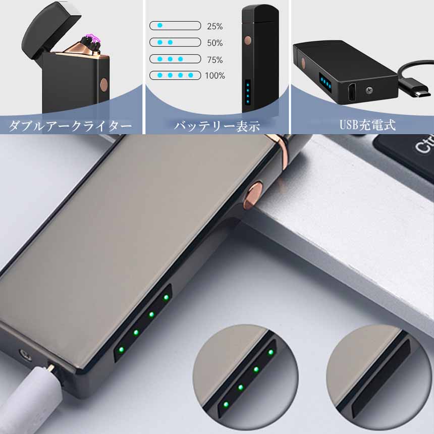 【USB充電式 電子ライター】簡単にPCやアダプタで充電できます。充電時間の目安約3~4時間(環境により異なります)。使い捨ての100円ライターと違いゴミが出なくなり便利、地球に優しいエコライターです。