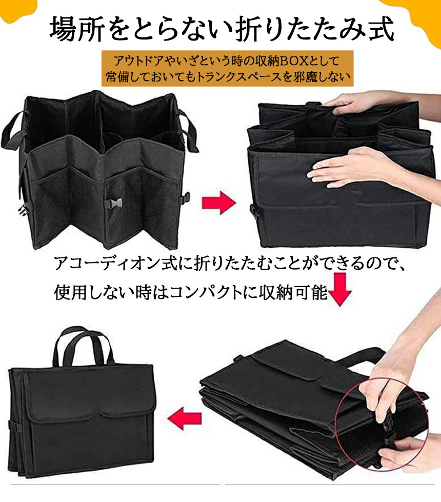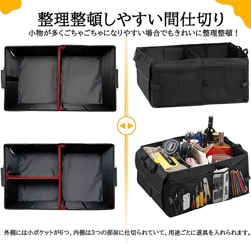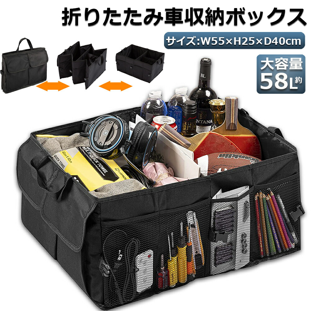 車 収納 車用収納ボックス 折り畳み式 トランクボックス 仕切り 収納力 超大容量 58L 折り畳み式 車載 収納箱 box トランク収納ケース 取っ手付 防水 カー用品 カー用品<br>