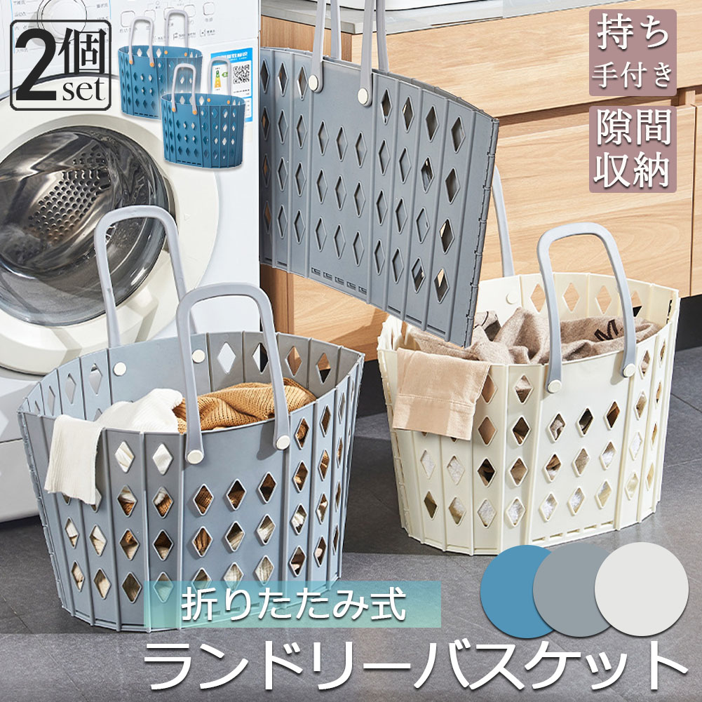 ランドリーバスケット 折りたたみ 取っ手付き付き ランドリーボックス ランドリーバッグ ランドリー 脱衣所 大容量 スリム 折り畳み 軽い 軽量 持ち手付き コンパクト 省スペース<br>