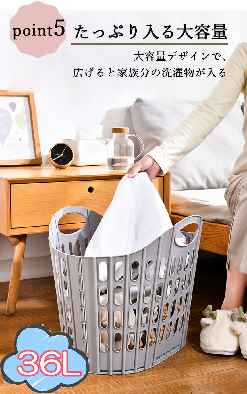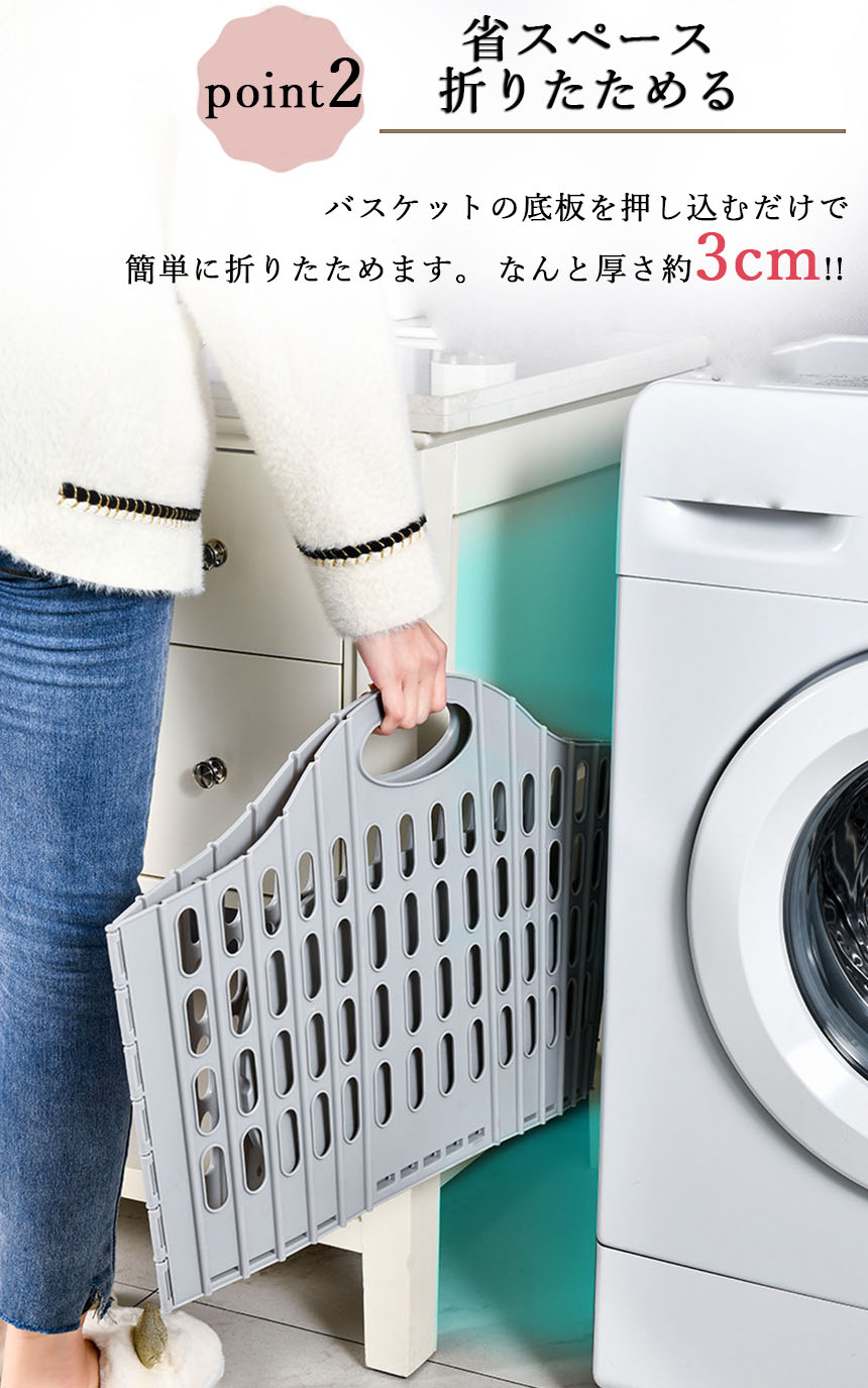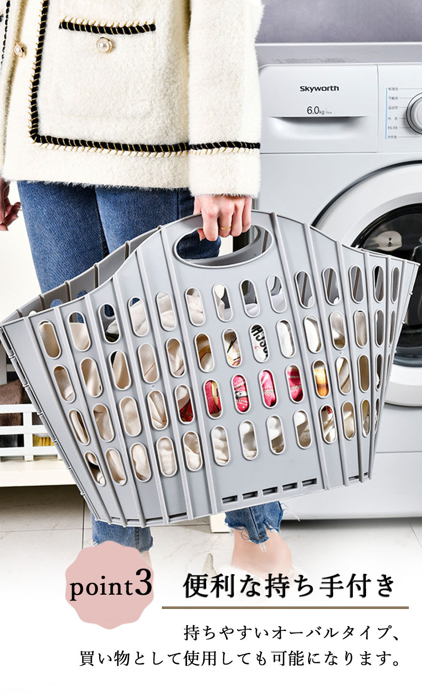 折りたたみランドリーバスケット 折りたたみ 洗濯かご 洗濯カゴ 洗濯物入れ 洗濯ボックス ランドリー バッグ 大容量 スリム 折り畳み 軽い 軽量 持ち手付き コンパクト 省スペース<br>