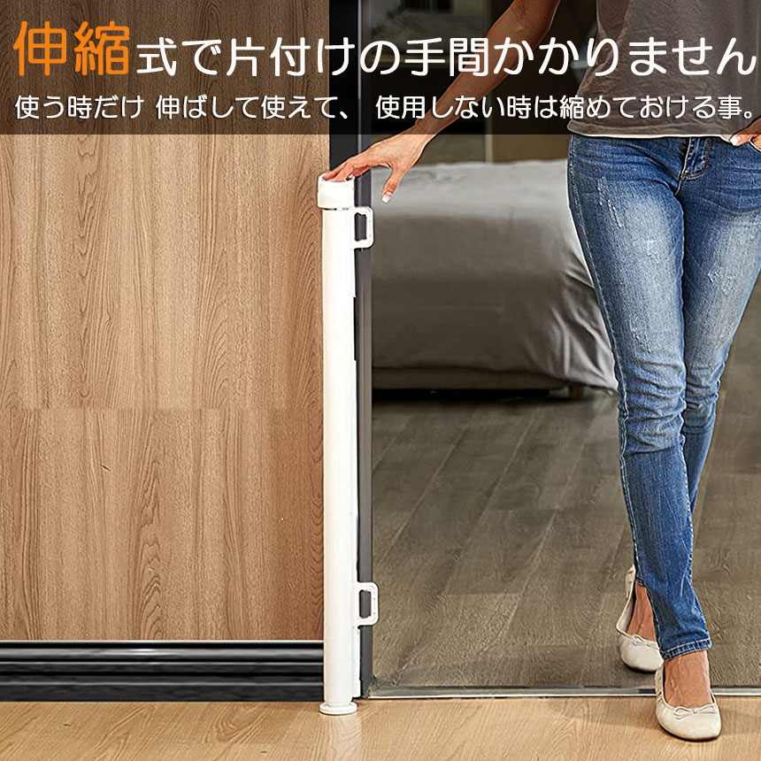 【ロールタイプで省スペース】:ロールゲートは高さ86×幅最大150cmまでです。使わないときはスッキリコンパクト、見た目もスタイリッシュ!さらに、巻取り式で省スペースのゲートだから、インテリアの雰囲気を壊すことなく必要なときだけ活躍します。