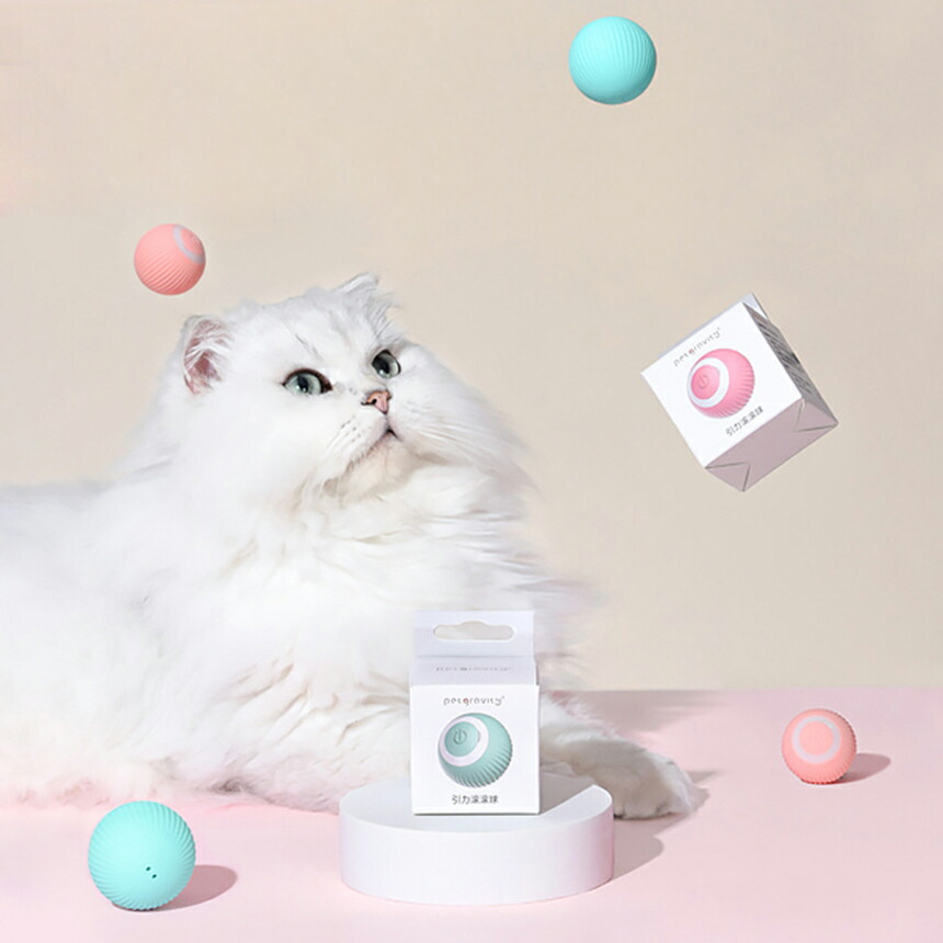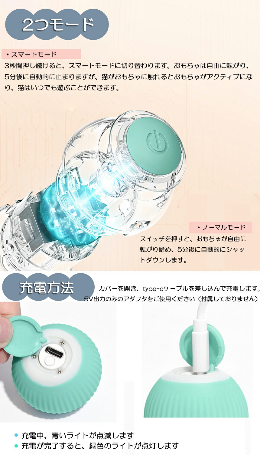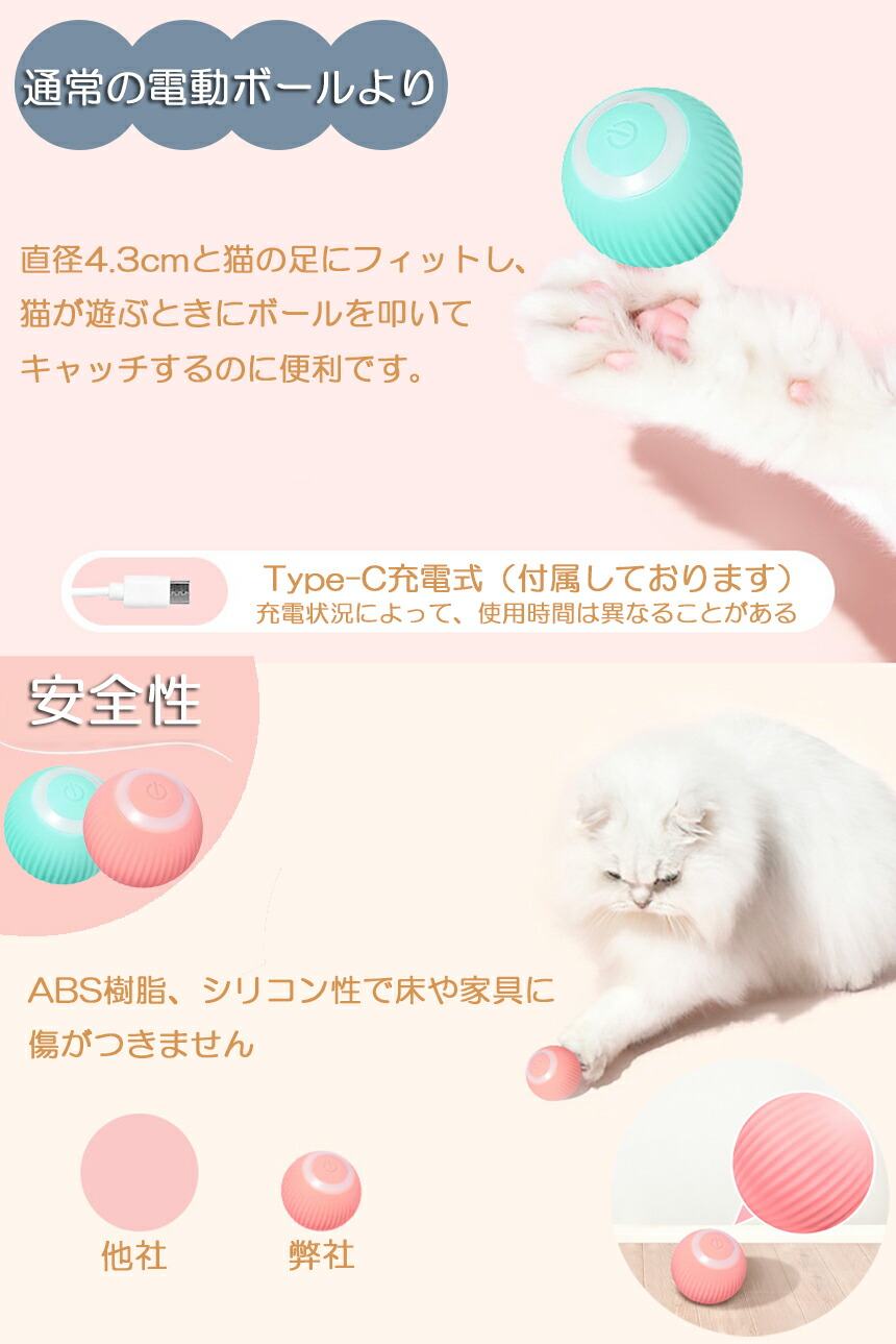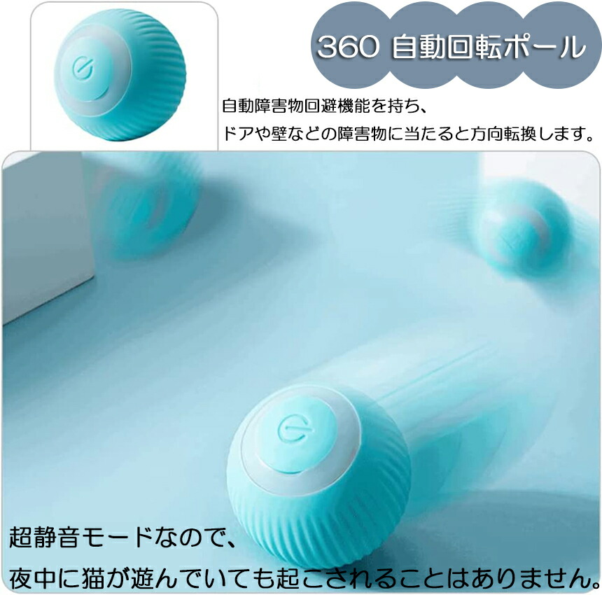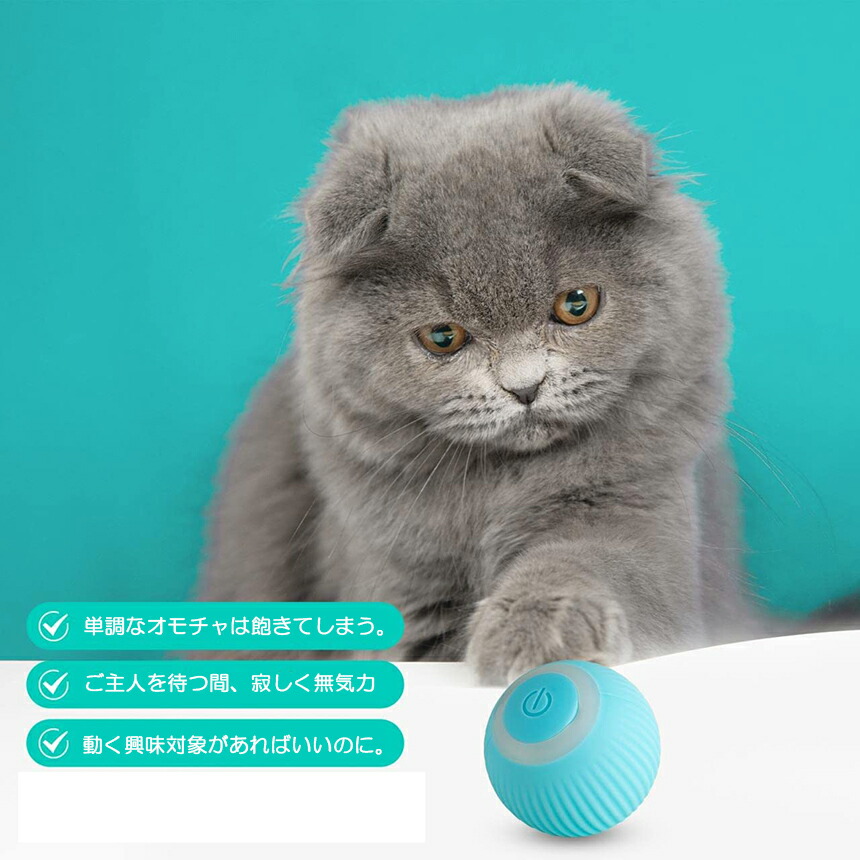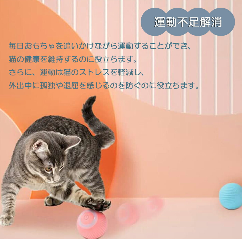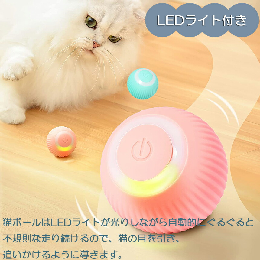 猫おもちゃ 猫じゃらし 電動ボール 電動 ボウル 自動走行ボール 光るボール 360度自動回転 LEDライト付き 発光回転ボール USB充電式 お留守番 ストレス解消 猫用品<br>