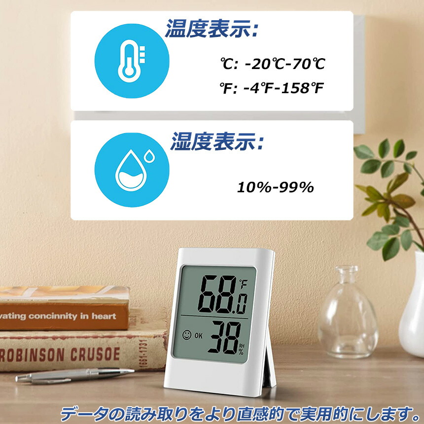 デジタル 温度計 湿度計 大型液晶 マグネット 温湿度計 LCD大画面 見やすい 単4電池 置き掛け兼用 卓上 壁掛け 華氏 摂氏 室内温度計 大画面 コンパクト<br>