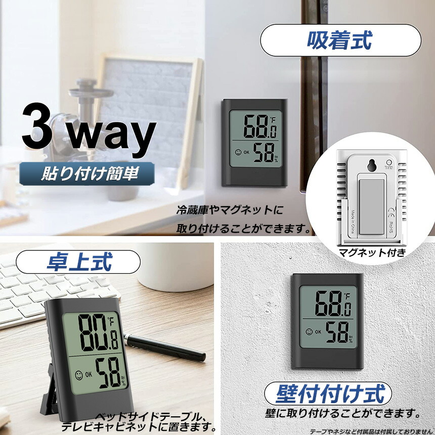 デジタル 温度計 湿度計 大型液晶 マグネット 温湿度計 LCD大画面 見やすい 単4電池 置き掛け兼用 卓上 壁掛け 華氏 摂氏 室内温度計 大画面 コンパクト【3個セット:ホワイト 3個セット】