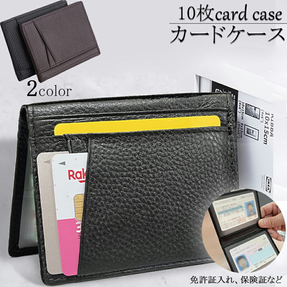 カードケース 大容量 薄型 免許入れ クレジットカード収納 カード入れ スリム 二つ折り パスケース IC ID 免許証 定期入れ パスケース 10枚収納<br>