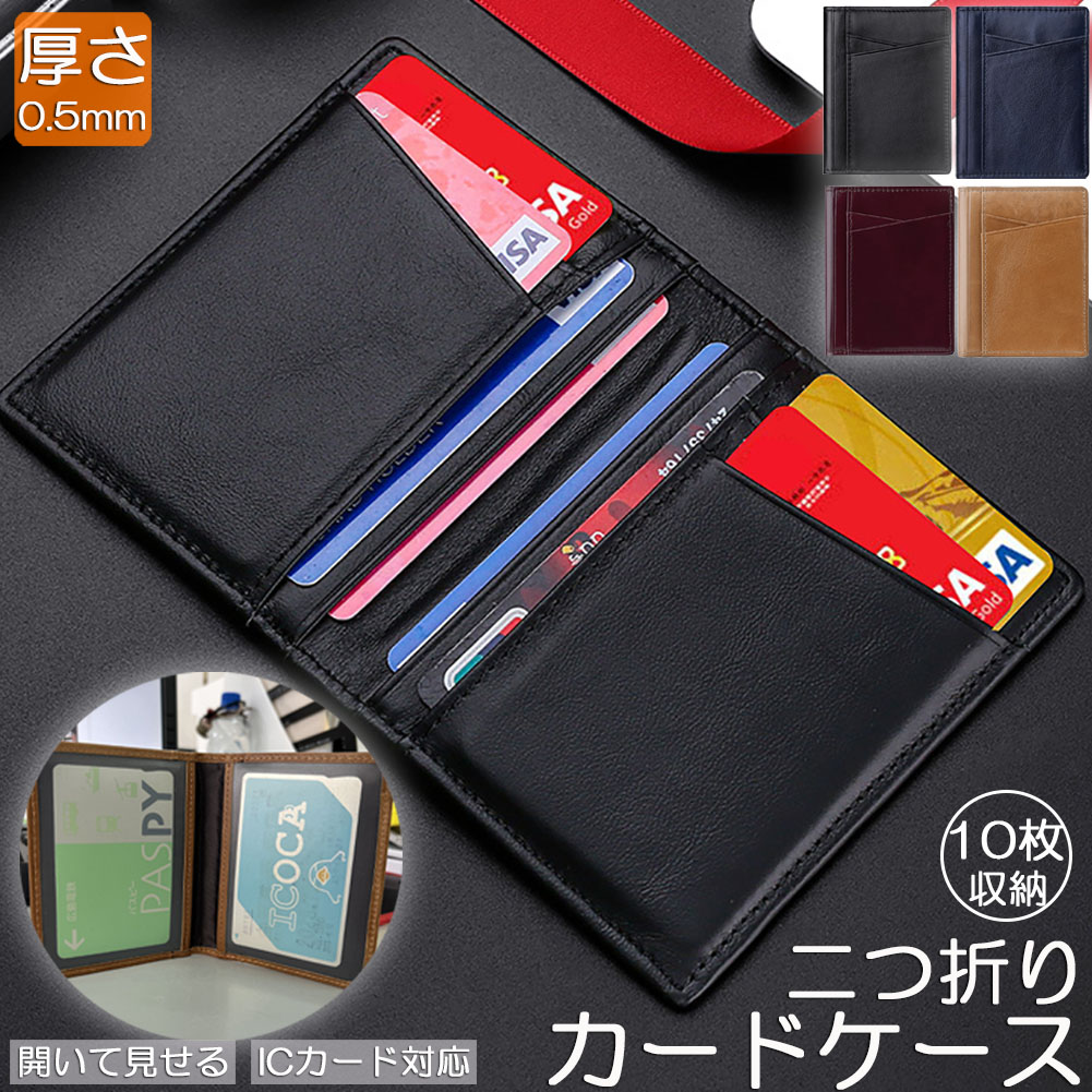 パスケース カードケース 大容量 薄型 免許入れ クレジットカード収納 本革 カード入れ スリム 二つ折り パスケース IC ID 免許証 定期入れ パスケース 10枚収納<br>