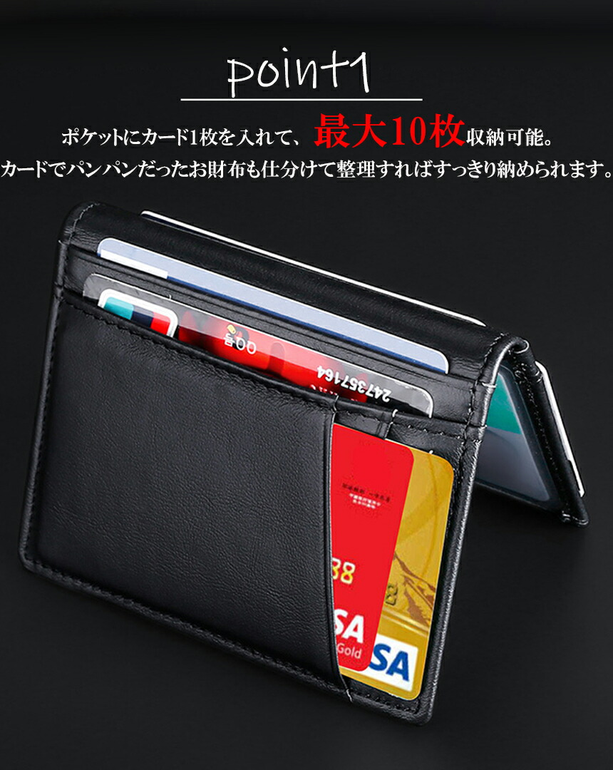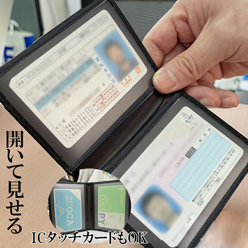 収納例: 免許証・保険証・クレジットカード・キャッシュカード・交通系ICカード・ポイントカードなど