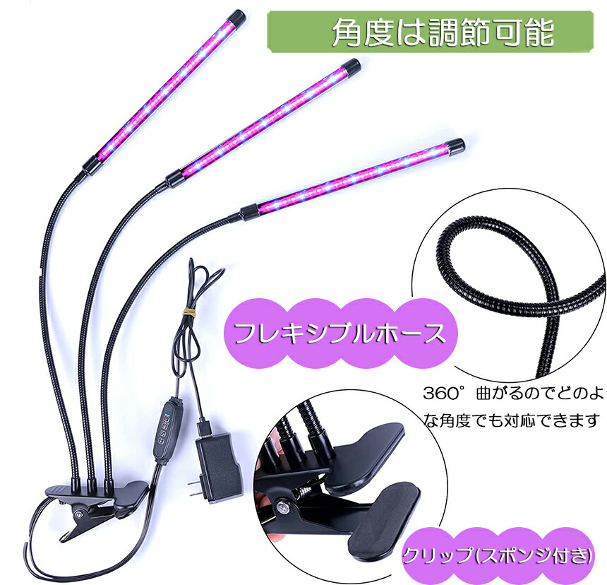 【360°調整可能な3ヘッド設計】:この植物ランプは調整してどこにでも配置することが容易である360度柔軟な首とクリップを備えています。120高輝度LED採用されておよび三つのライトヘッドなので、従来品より照射範囲や輝度などよりもっと効果が出てます。私たちの長いグースネックは、オフィスや家庭、温室で使用するために、より多くの植物にエネルギーを提供して、光がより広い領域をカバーするのを助けます。