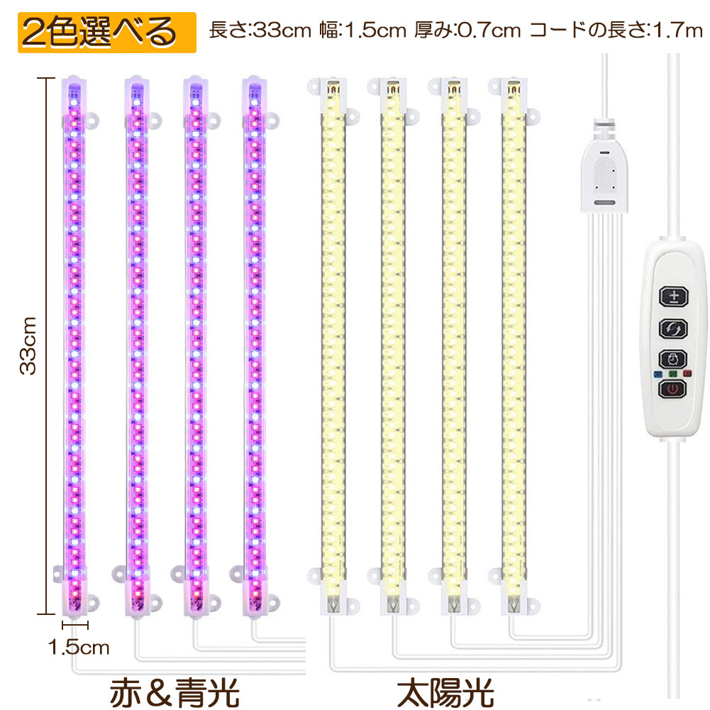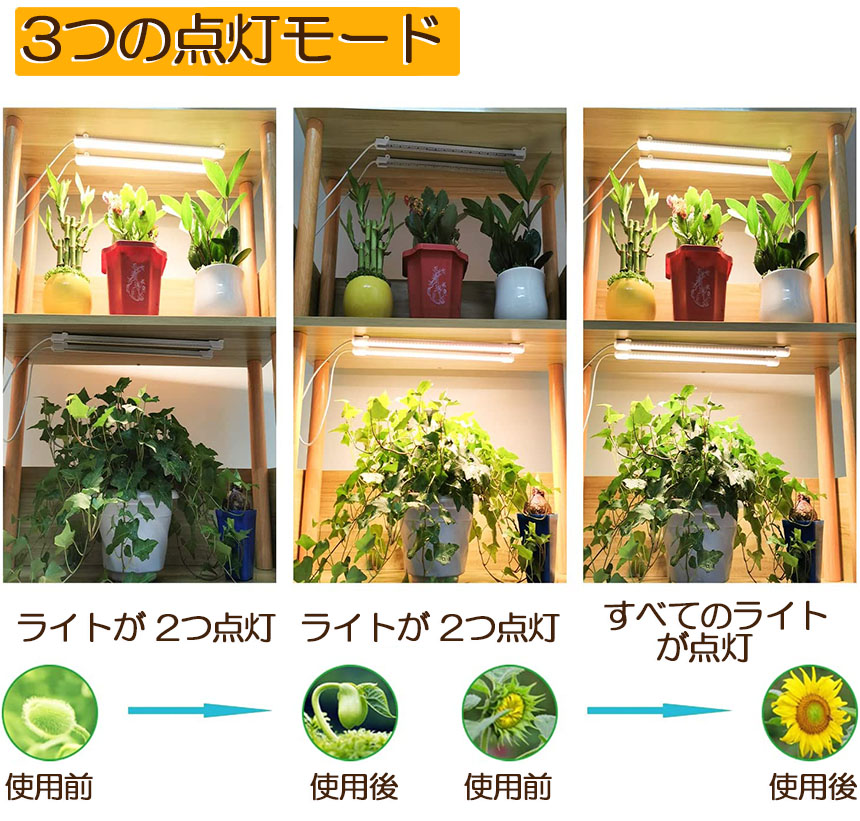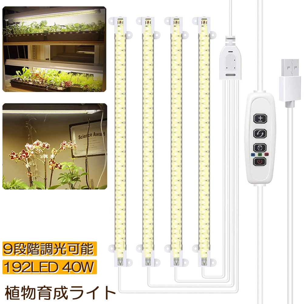 LED育成ライト 植物育成ライト タイマー 観葉植物育成ライト 育成ライト 暖色系 9段階調光 フルスペクトル 育苗ライト 192LED 4ヘッド付き 三つ照明モード 室内栽培ライト