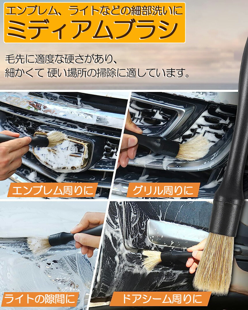 【適用範囲】エンブレムの隙間・トリム・タイヤホイールのディスク面・ボルトの穴ヘッドライト・テールランプ・網目状のグリルなど狭く細かい場所に最適です。
