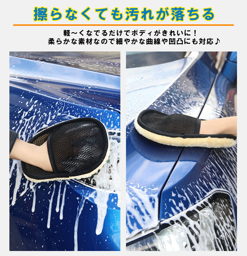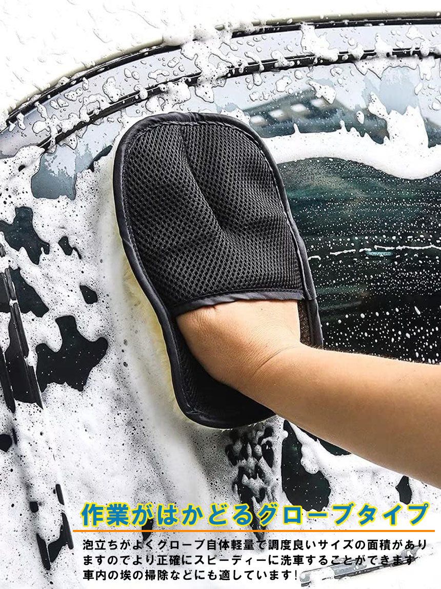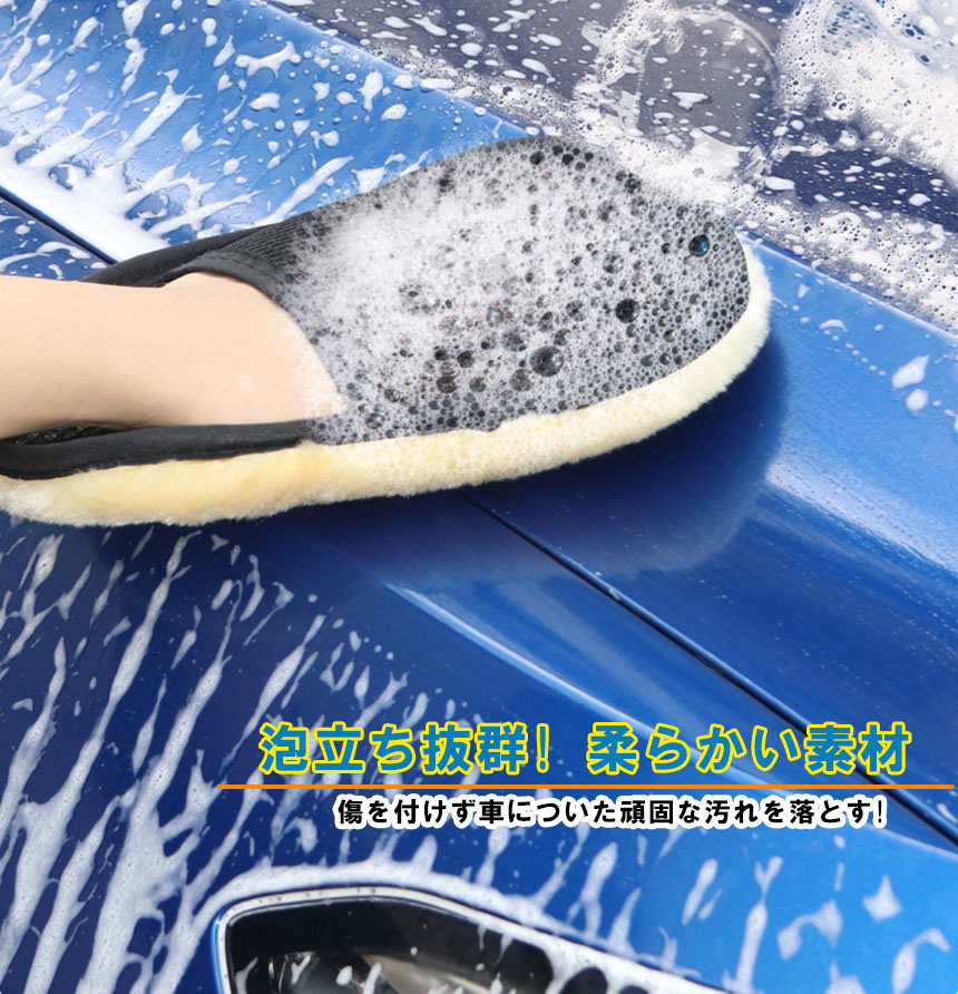 洗車グッズ 洗車グローブ 洗車グッズ 汚れ取りムートン 泡立ち易い 洗車傷防止 男女兼用 洗車用品 洗車スポンジ カー用品<br>