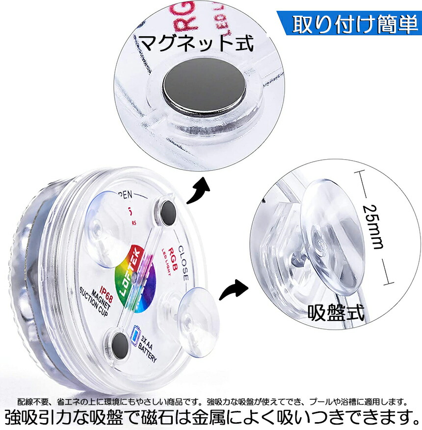 LED潜水ライト 水中ライト LED潜水ライト RGBリモコン付き 配線不要 吸盤式 16色 LED 明るさ調節 色調変更 フローティングプールライト 水族館 花瓶 庭 ガーデン 結婚式 パーティー<br>