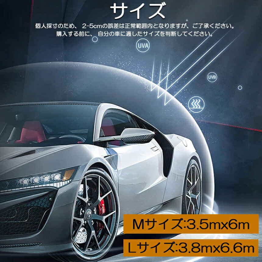 ●普遍的に適用可能:2つのサイズが利用可能で、Mサイズ:3.5mx6m、Lサイズ:3.8mx6.6m、あらゆる種類の車に適しており、完璧なサイズはあなたの車によりよくフィットし、よりよく保護します。