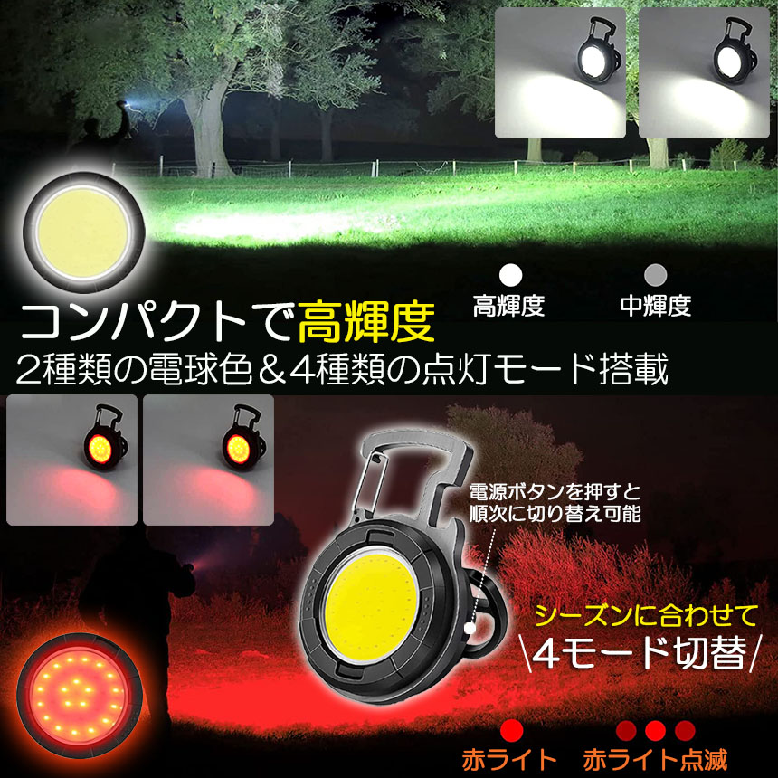 【ミニサイズ】ミニCOB投光器の重さはわずか45gです。 キーホルダーのデザイン採用、外出時バッグ掛けまたキーを持ち運びして、ポーチに入れたり便利に持ち歩けます。