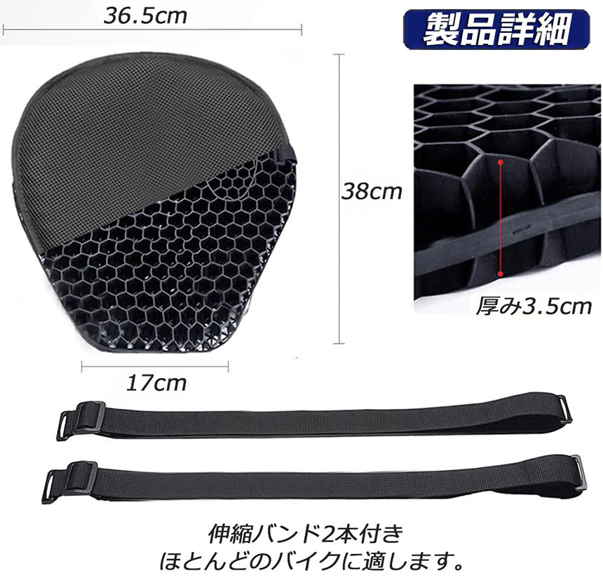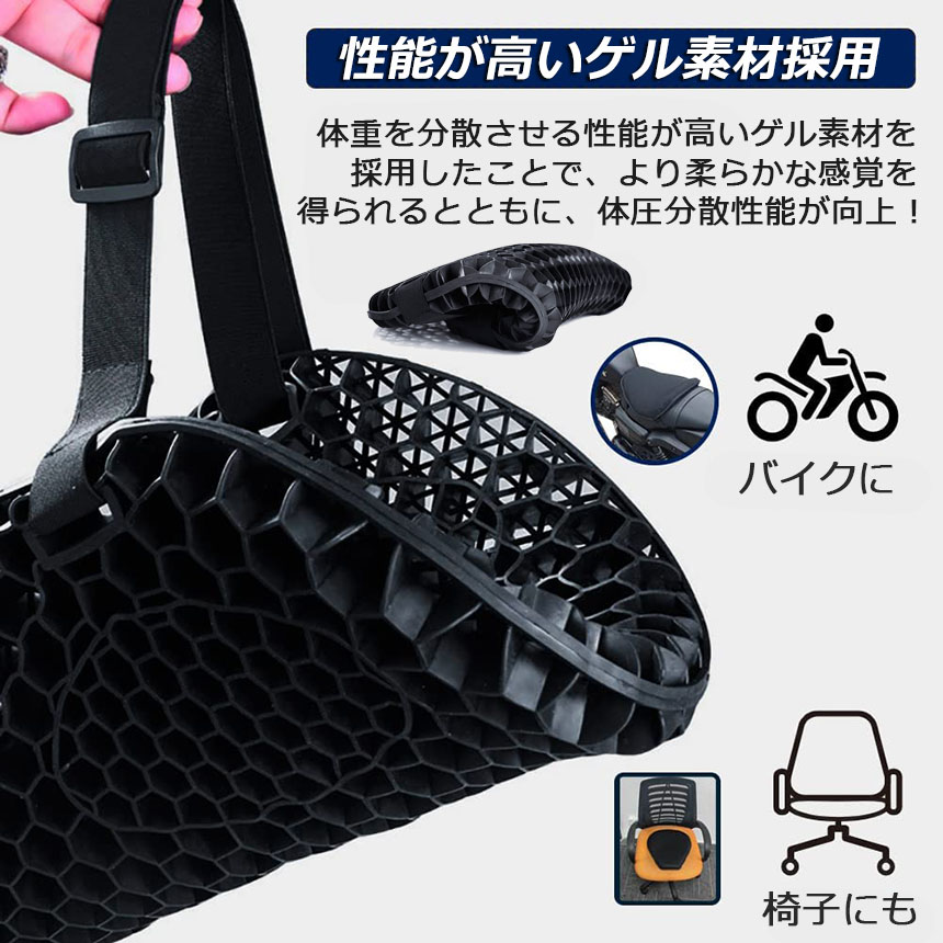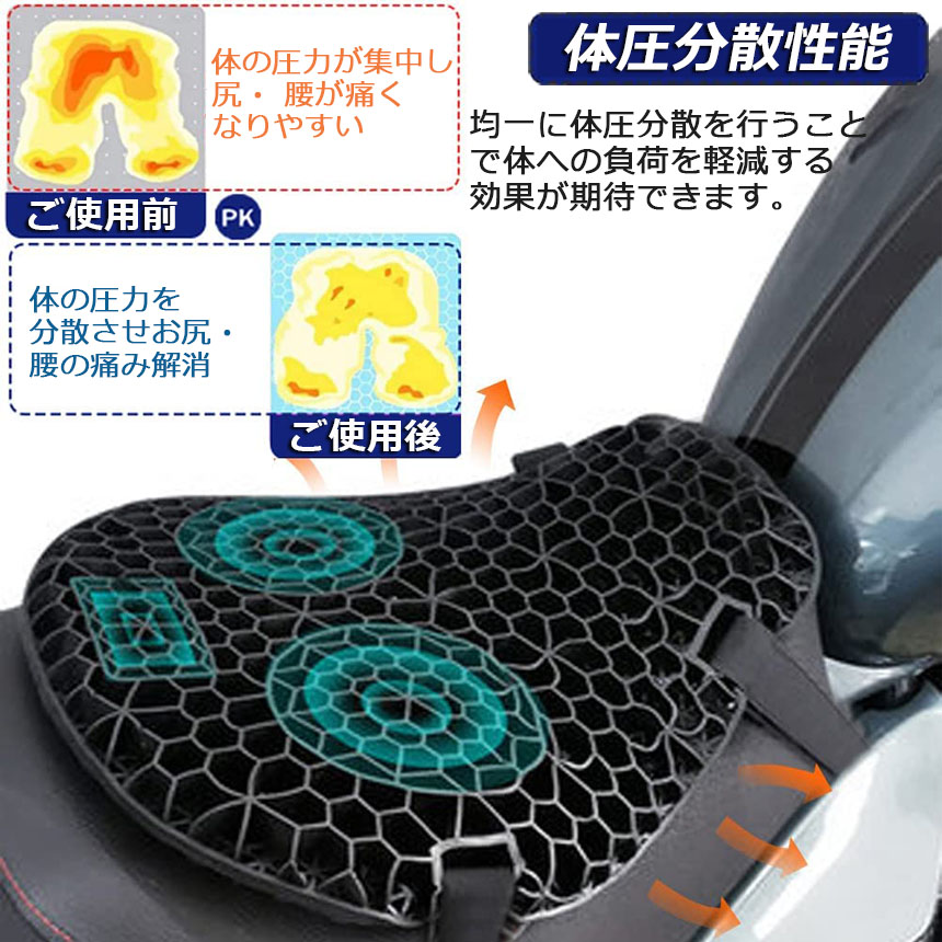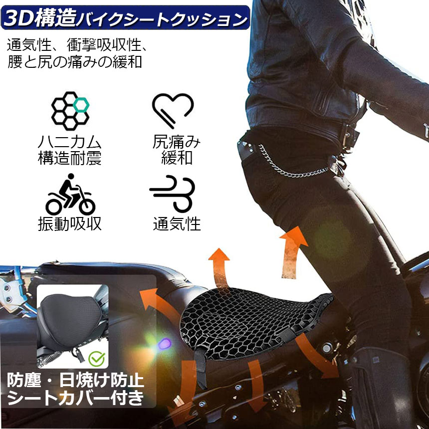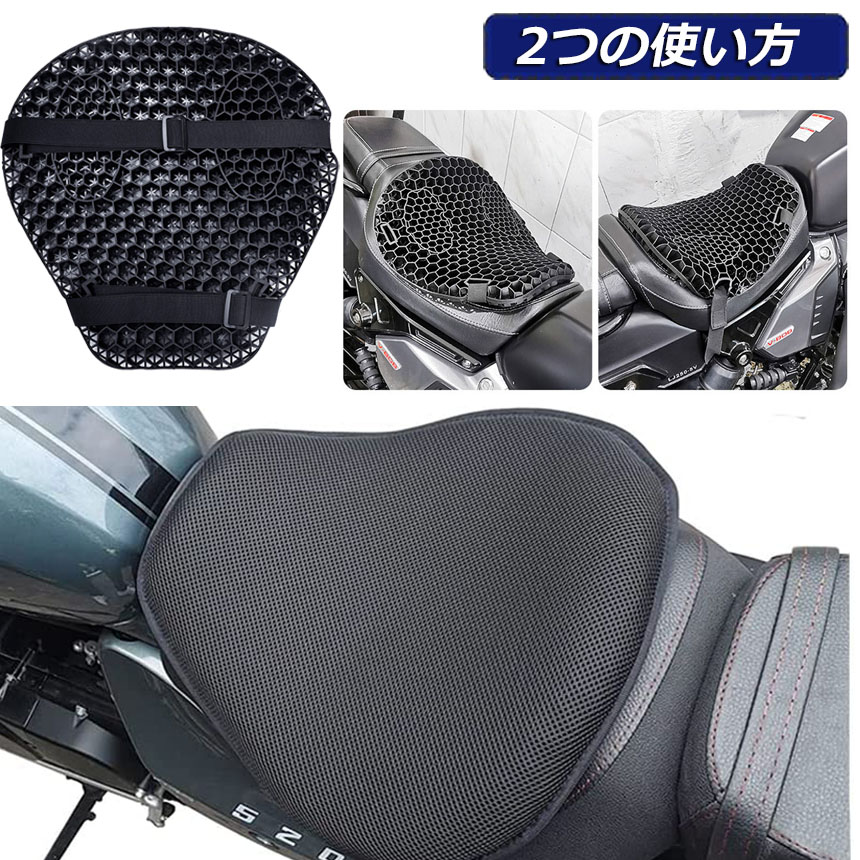 ゲルクッション バイクシートクッション ゲルシートカバー 3D メッシュシートカバー 四季通用 通気 衝撃吸収 オートバイシートカバー 断熱 日焼け止め 濡れ防止 換気<br>