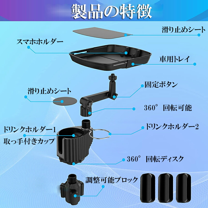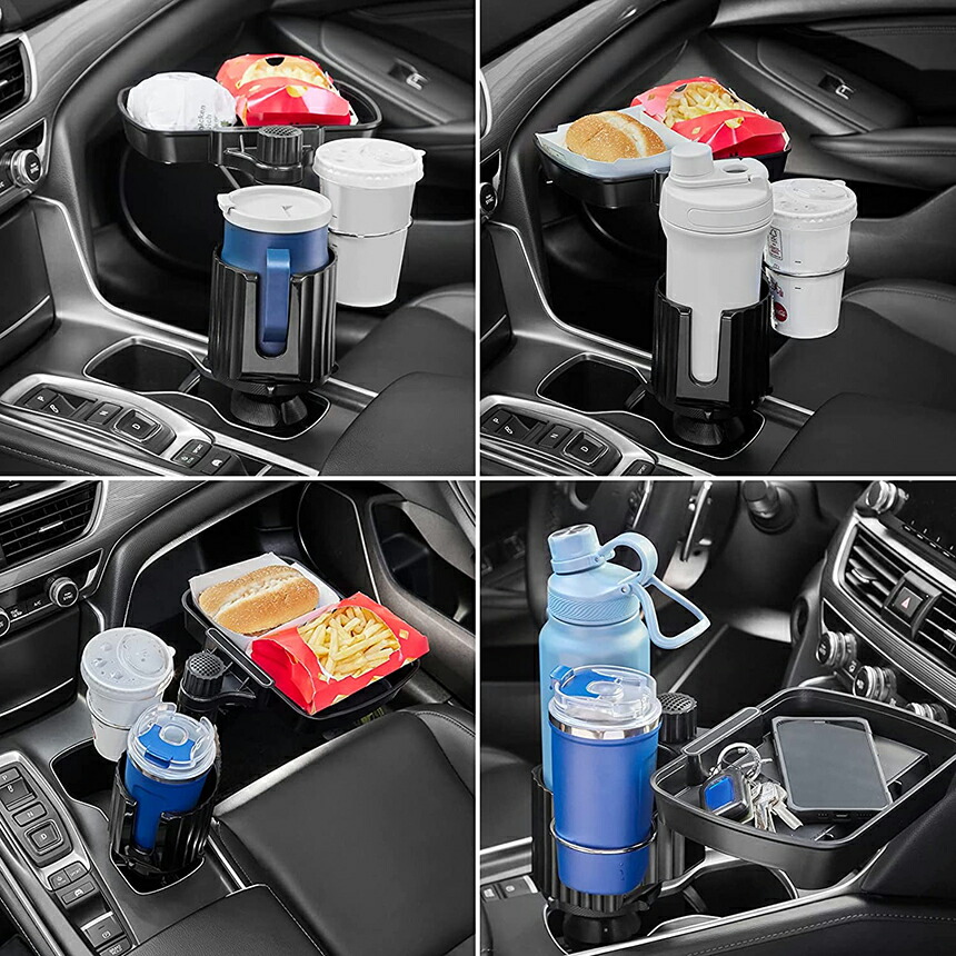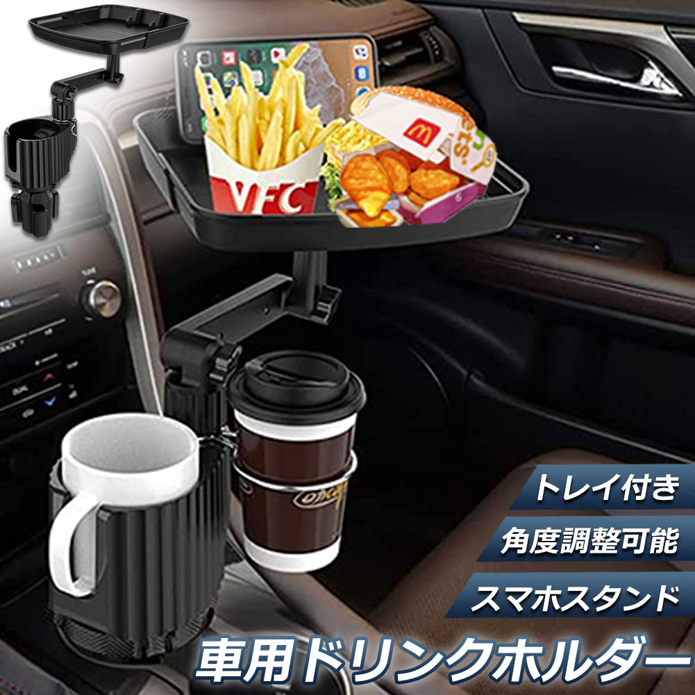 車載トレイ スマホスタンド カーテーブル 2in1 差し込み式 多機能 360°回転 スマホ 小物入れ 滑り止めシート 回転 ダブルカップホルダー 内装用品 カー用品 車用品 アクセサリー<br>