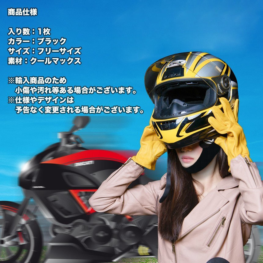 ヘルメットを擦る際にマスクがゆるむのを防ぐため、下の位置を顎にしっかりと固定します。抗菌防臭加工によりヘルメットをヘッドから分離し、ヘルメットの内側をキレイに保ちます。