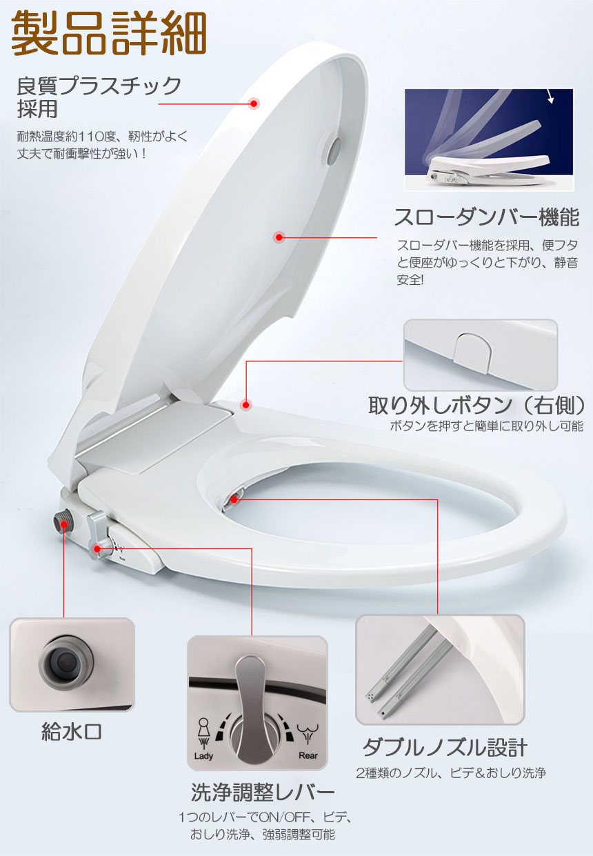 【ダブルノズル洗浄】おしり,ビデ洗浄専用ノズルのツィンノズルで清潔!